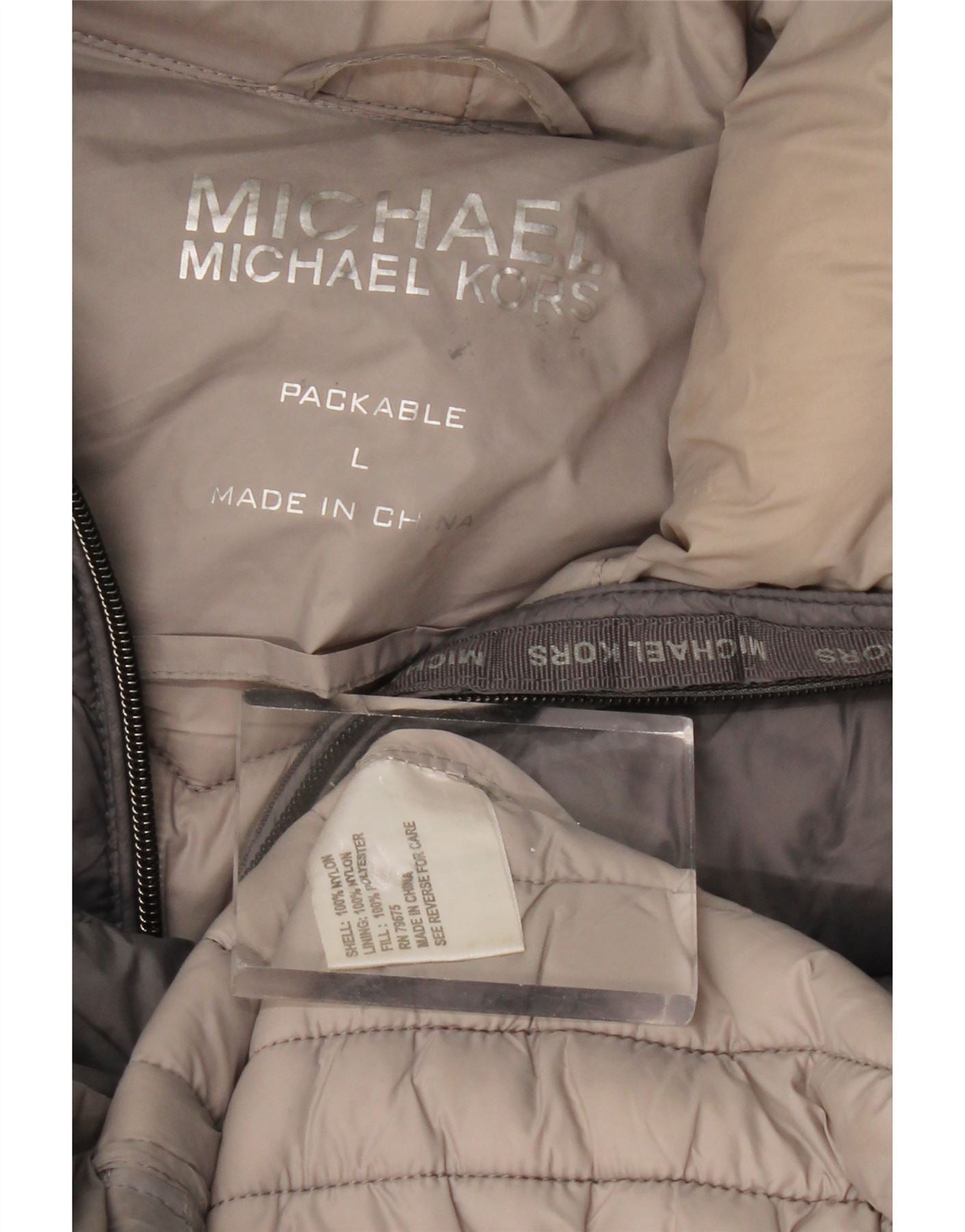 MICHAEL KORS Ženski podstavljeni kaput s kapuljačom UK 16 Veliki sivi najlon