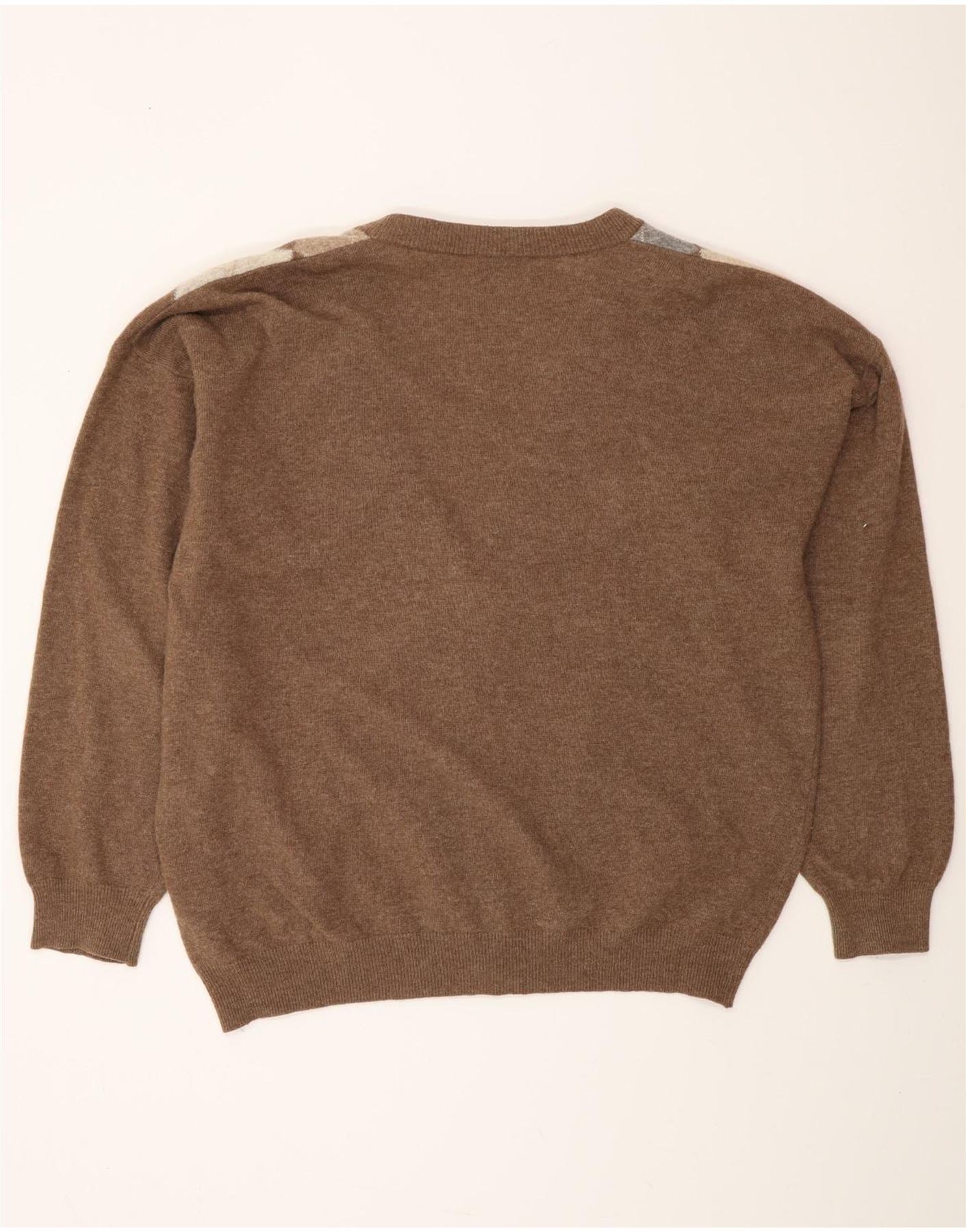 MONELLO Muški kardigan džemper IT 52 Large Brown Argyle/Diamond Wool