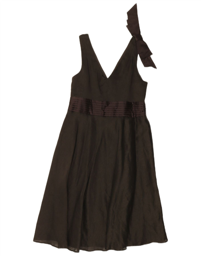 MONSOON Womens Sleeveless A-Line Dress UK 14 Medium Brown Linen
