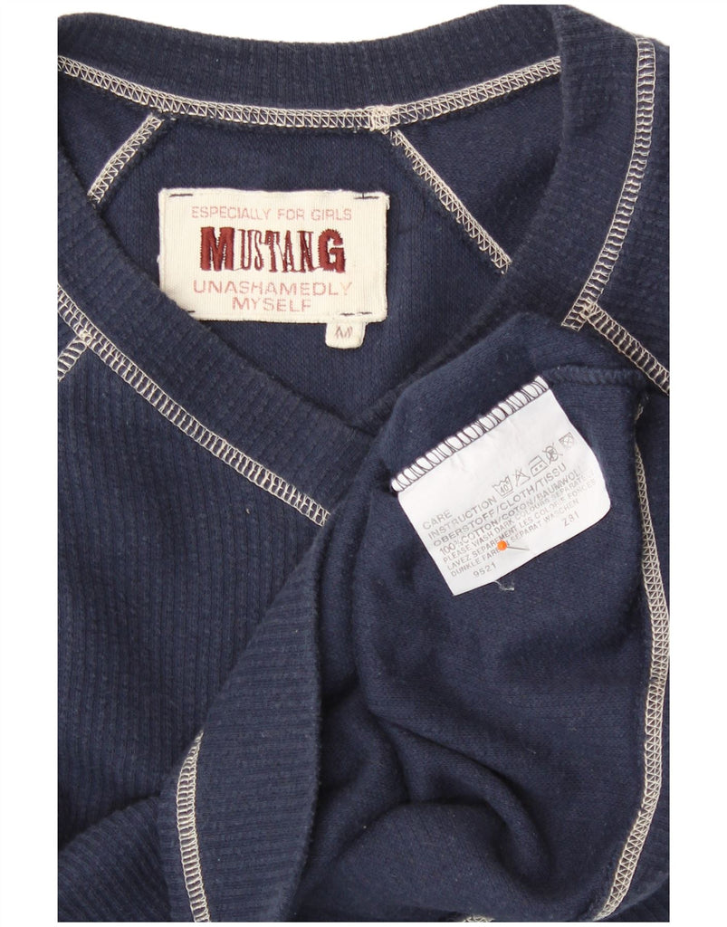 MUSTANG Womens Crop Top Long Sleeve UK 12 Medium Navy Blue Cotton