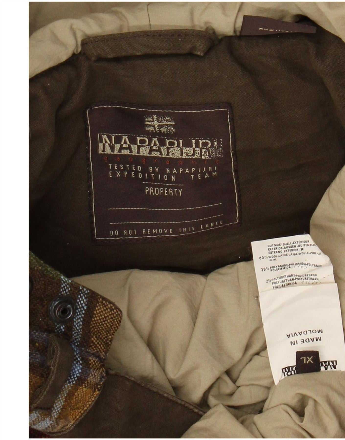 NAPAPIJRI Mens Graphic Hooded Anorak Jacket UK 42 XL Brown Check Wool
