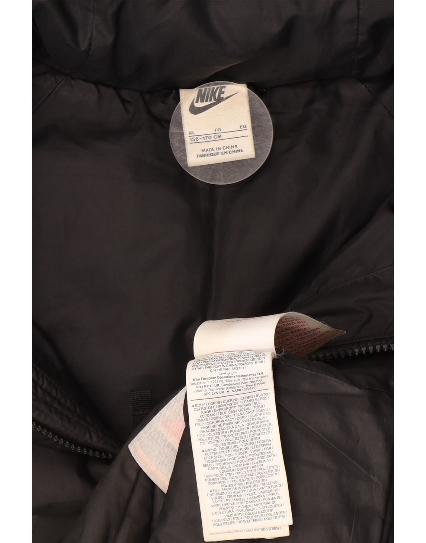 Podstavljena jakna Nike za dječake 13-14 godina XL crna od poliestera