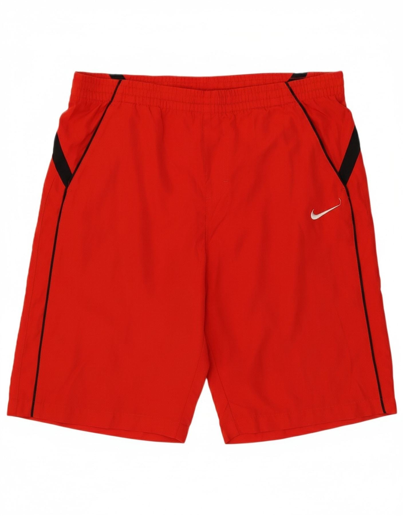 - AI Description: This Nike boys shorts are crafted from lightweight red woven polyester. They feature an elasticated pull on waist for comfort and a regular athletic fit for ease of movement. Practical pockets are included. A subtle logo accent adds a signature touch. These shorts are ideal for sports and active wear.