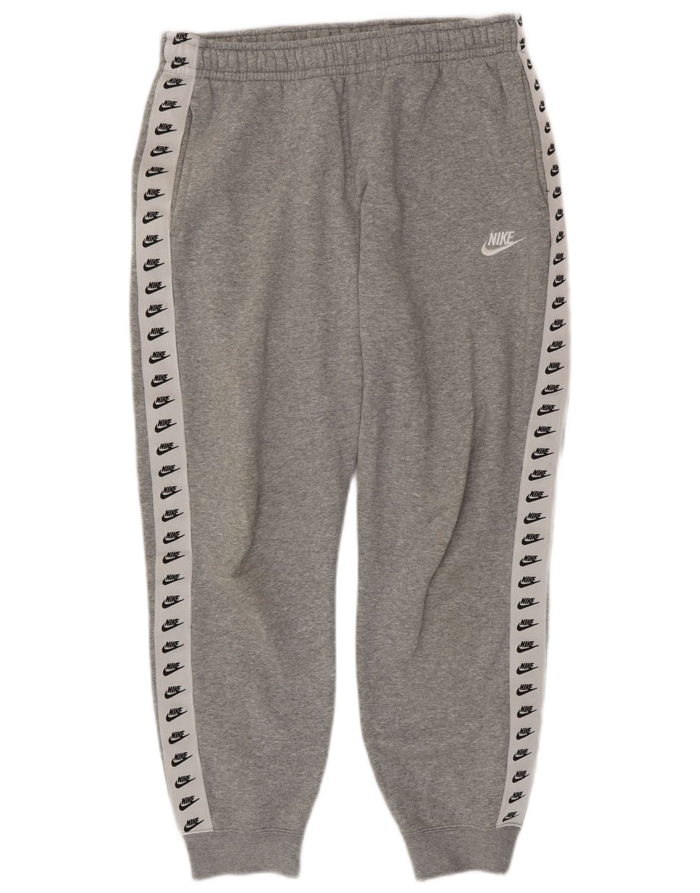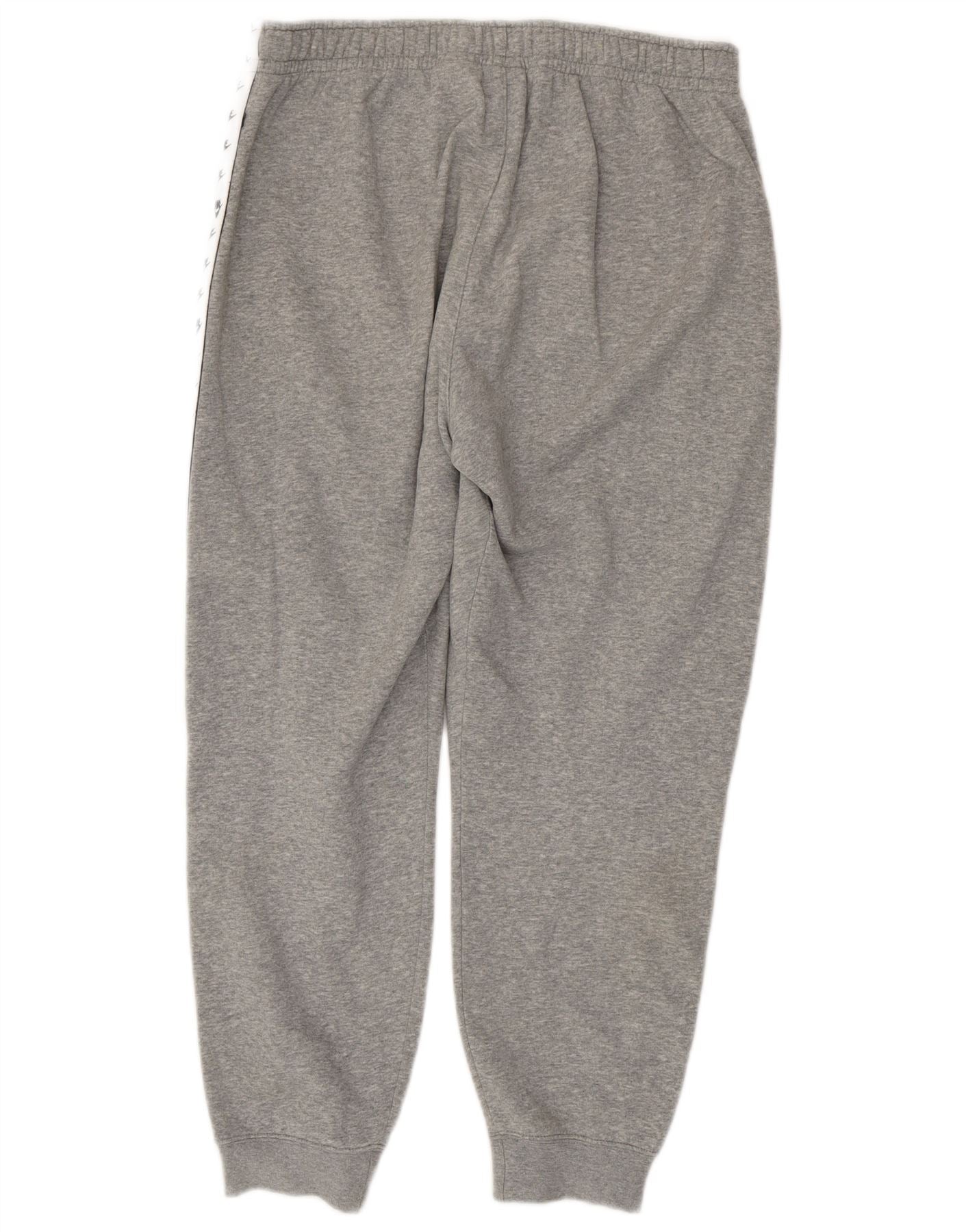 - AI opis: Ove Nike muške trenirke izrađene su od meke sive miješane tkanine, udobne mješavine pamuka i poliestera. Imaju elastično povlačenje u struku s uzicom za prilagodbu. Uobičajeni dizajn uključuje praktične džepove. Oblijepljene strane s ponovljenim Nike logotipovima dodaju prepoznatljiv atletski detalj. Izvezeni Nike logo na prednjoj strani upotpunjuje sportski izgled.