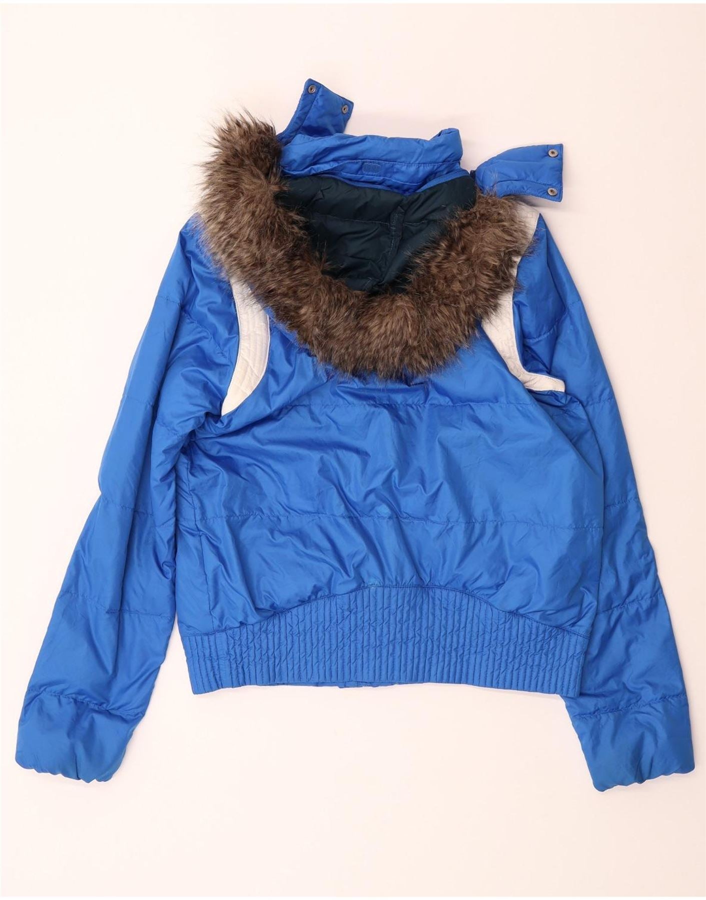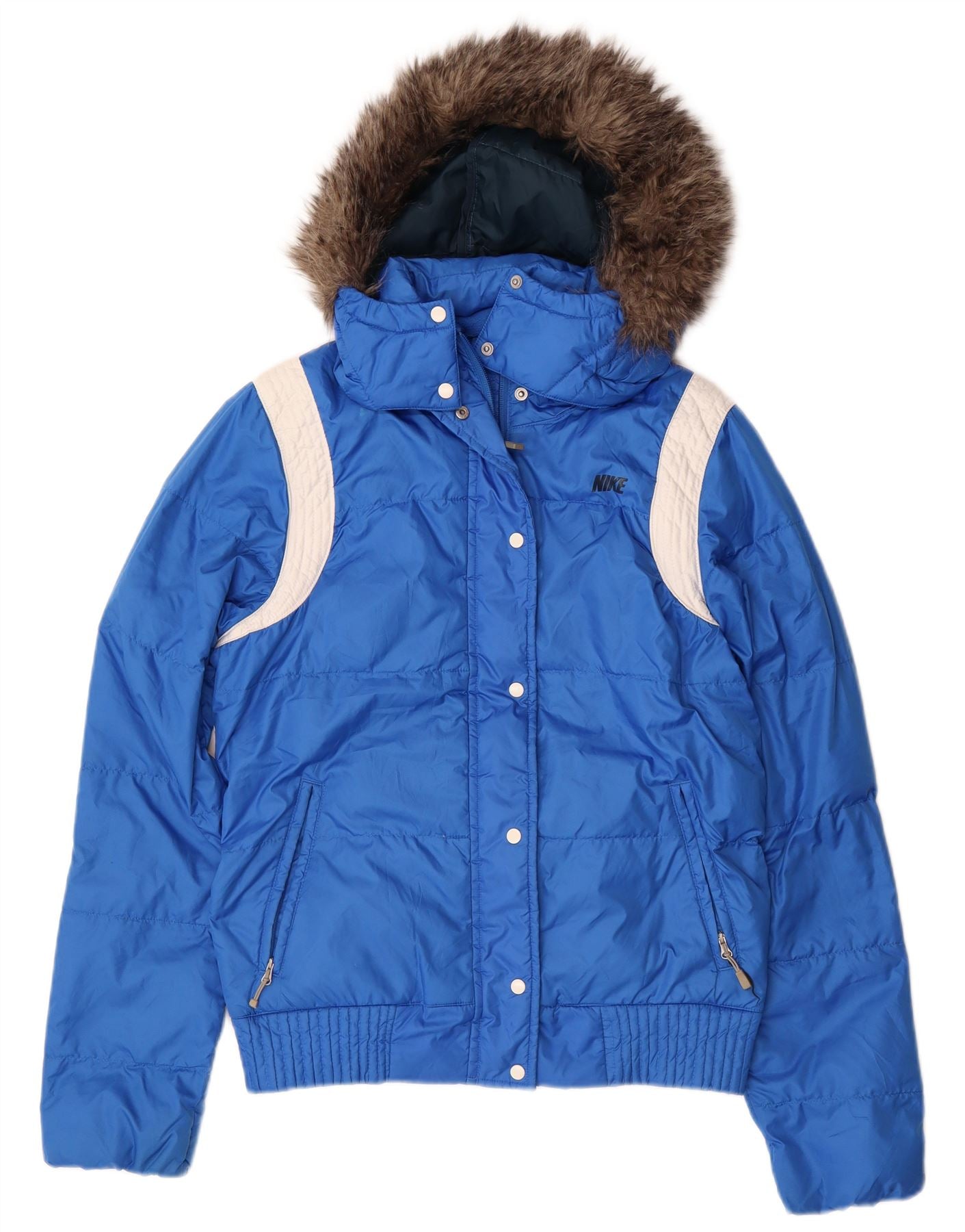 NIKE Womens Hooded Padded Jacket UK 16 Large Blue Colourblock Polyester