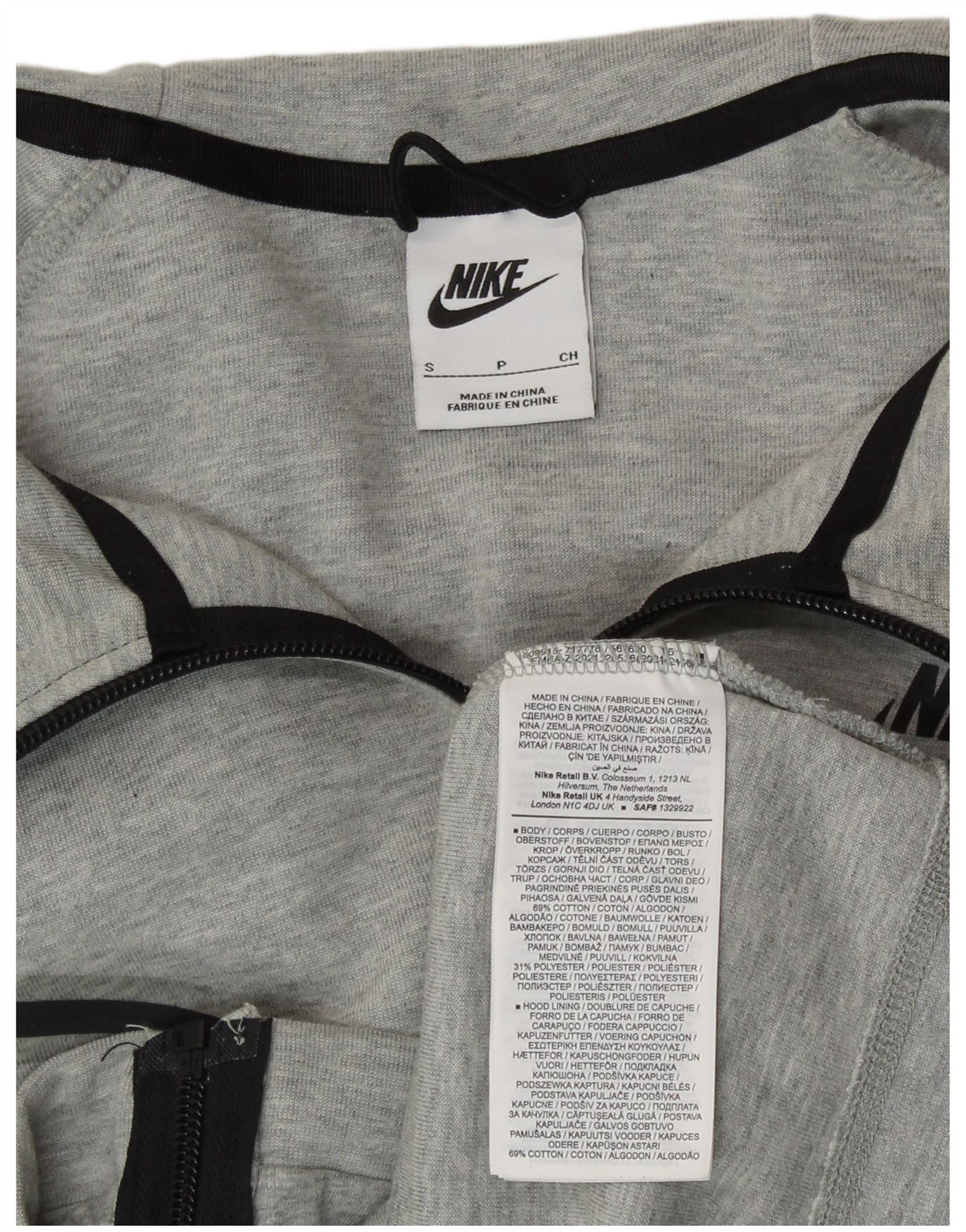 Nike ženski preveliki pulover s kapuljačom s patentnim zatvaračem UK 10 mali sivi flekasti pamuk