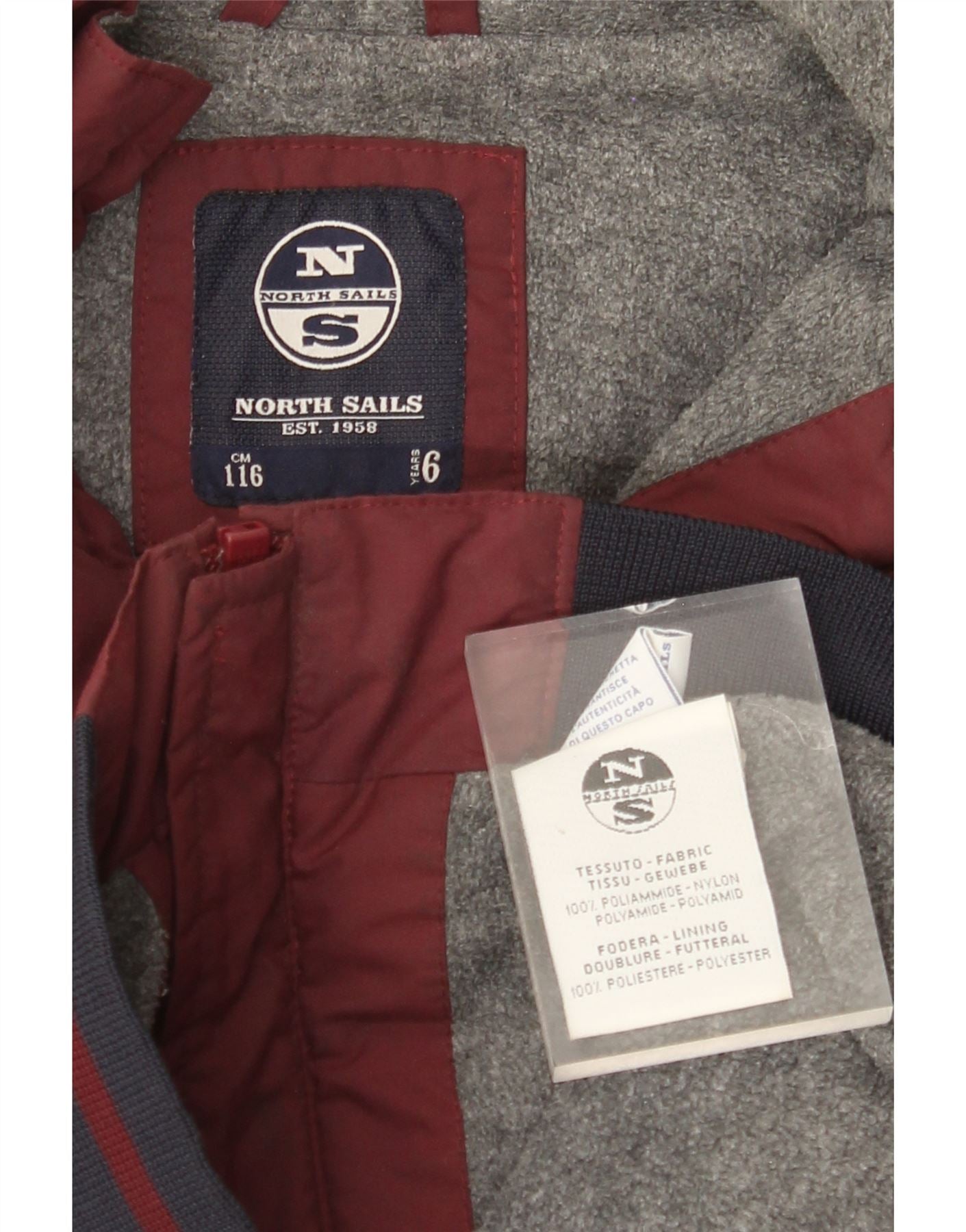 NORTH SAILS Boys Graphic Bomber Jacket 5-6 Years Burgundy Colourblock