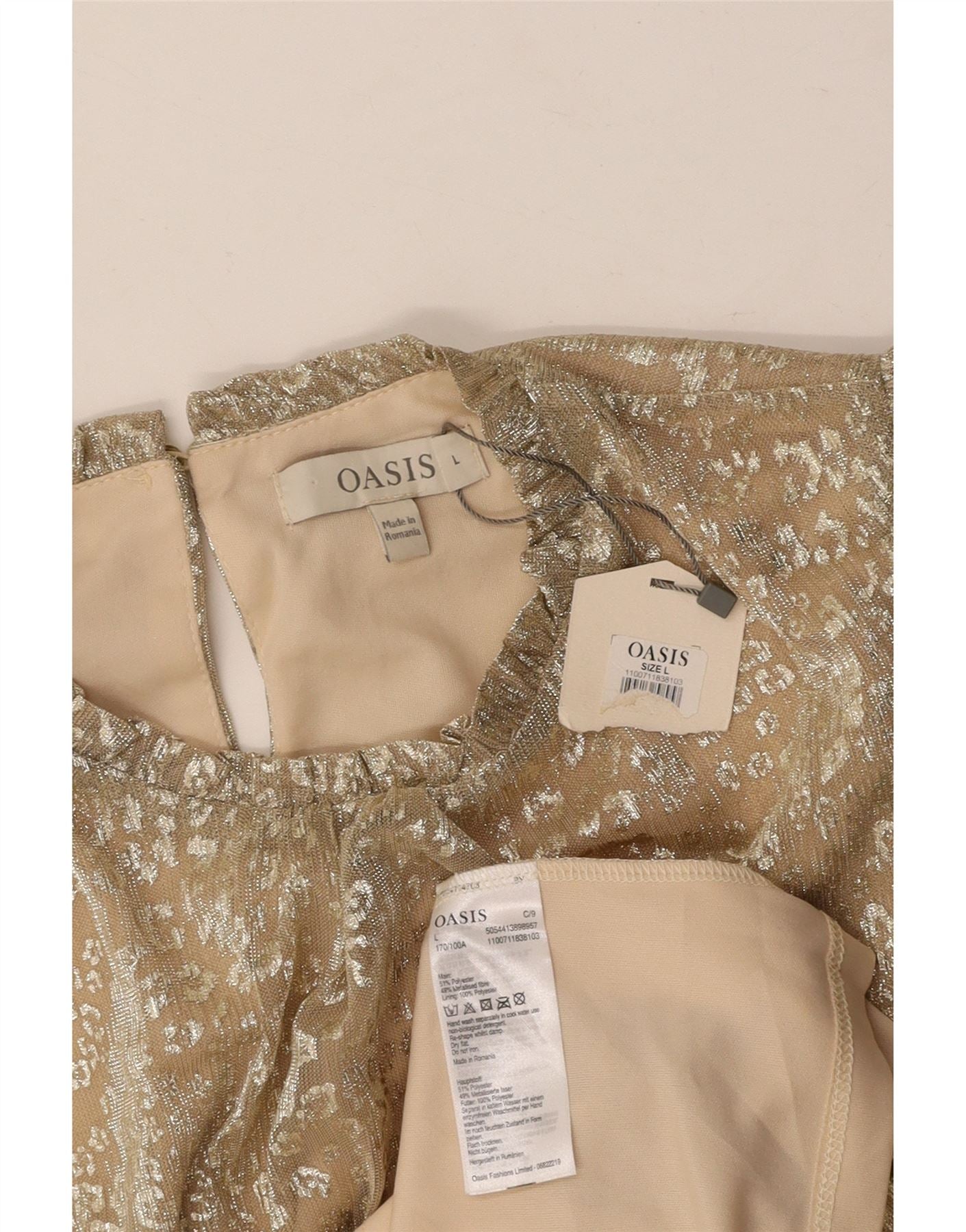 OASIS ženski gornji dio bluze bez rukava UK 14 Veliki bež životinjski print