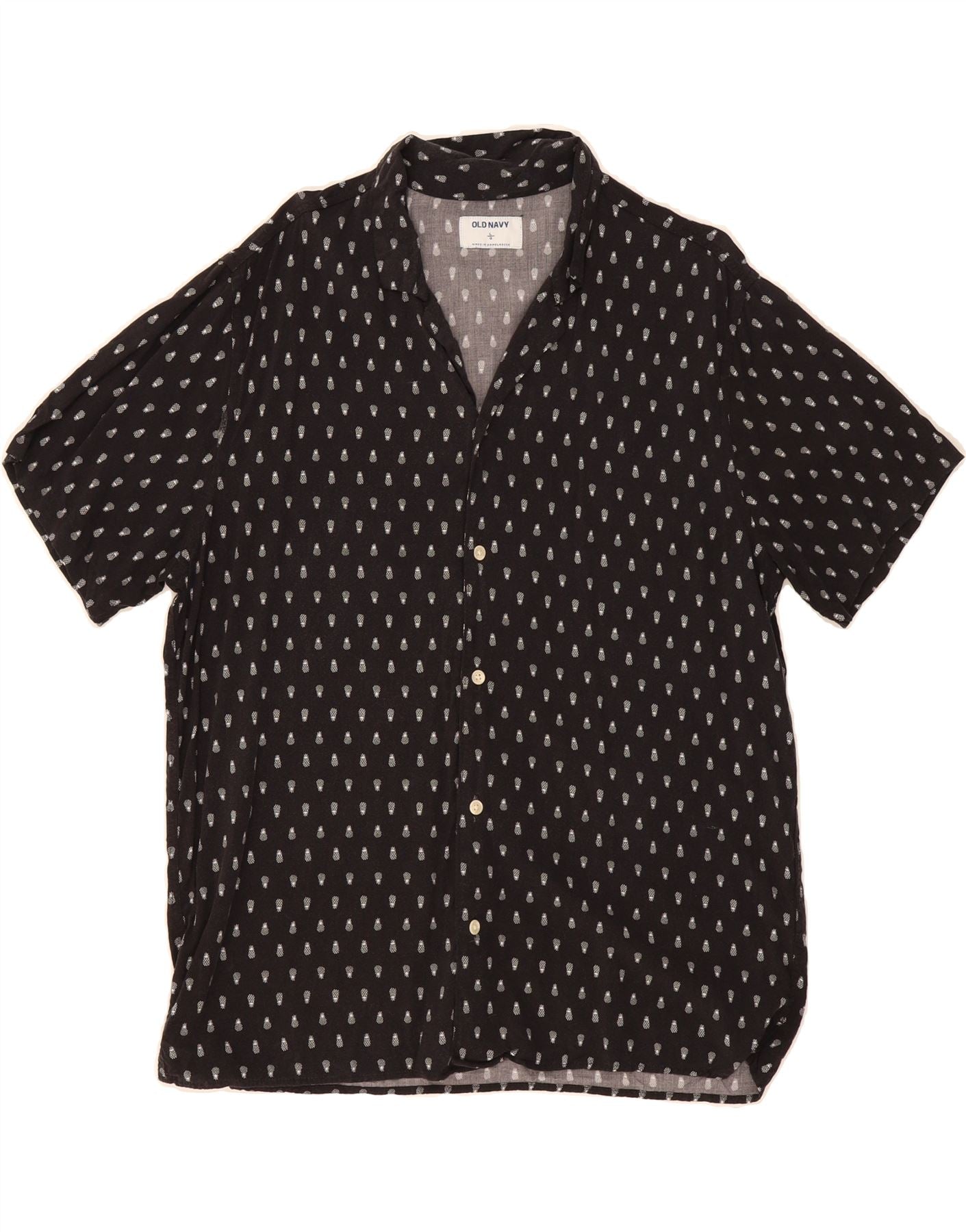 OLD NAVY Mens Abstract Pattern Short Sleeve Shirt Large Black Rayon