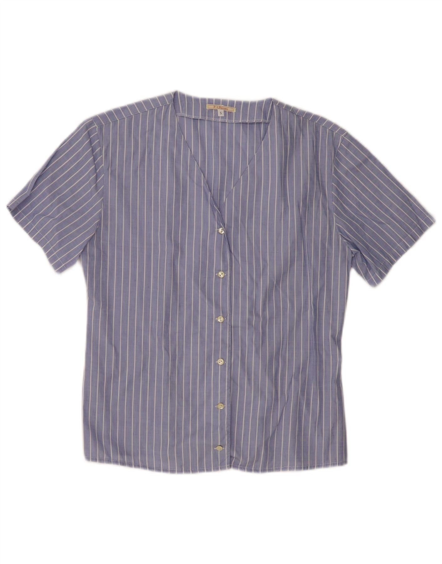 PAOLO PECORA Ženska košulja kratkih rukava UK 10 pamuk s malim plavim prugama