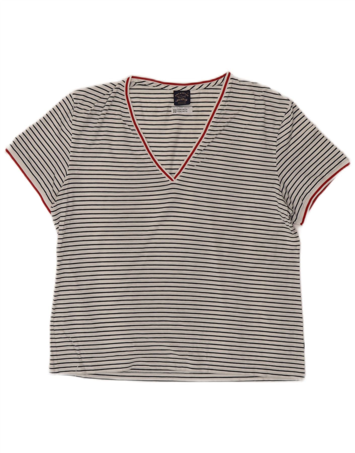 PAUL & SHARK Ženska majica kratkih rukava UK 18 XL Pamuk na bijele pruge