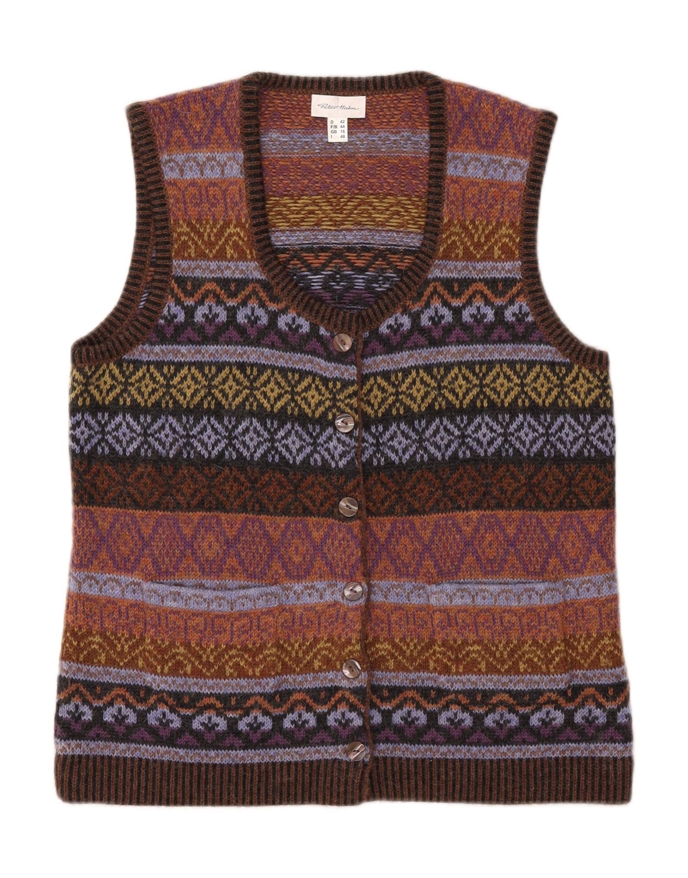 PETER HAHN Ženski džemper bez rukava UK 16 Large Brown Fair Isle