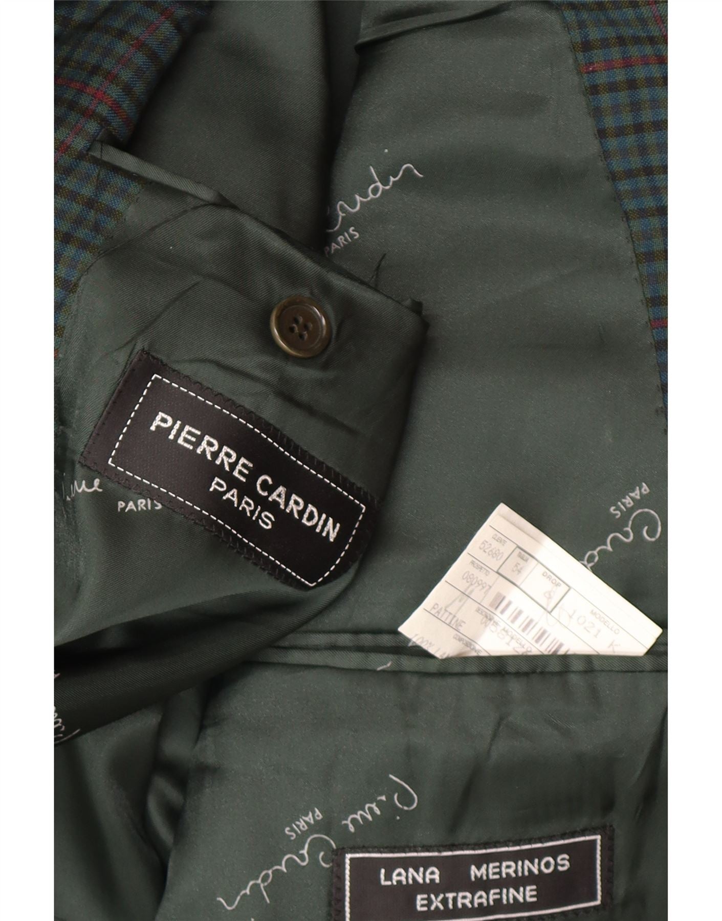 PIERRE CARDIN Mens 2 Button Blazer Jacket IT 54 2XL Green Check Wool