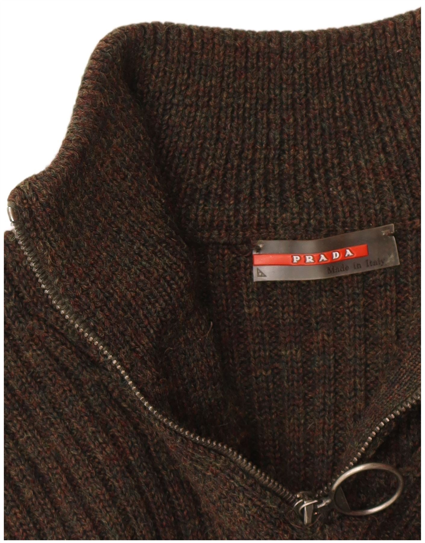 PRADA ženski džemper s izrezom s patentnim zatvaračem IT 48 XL smeđe djevičanske vune