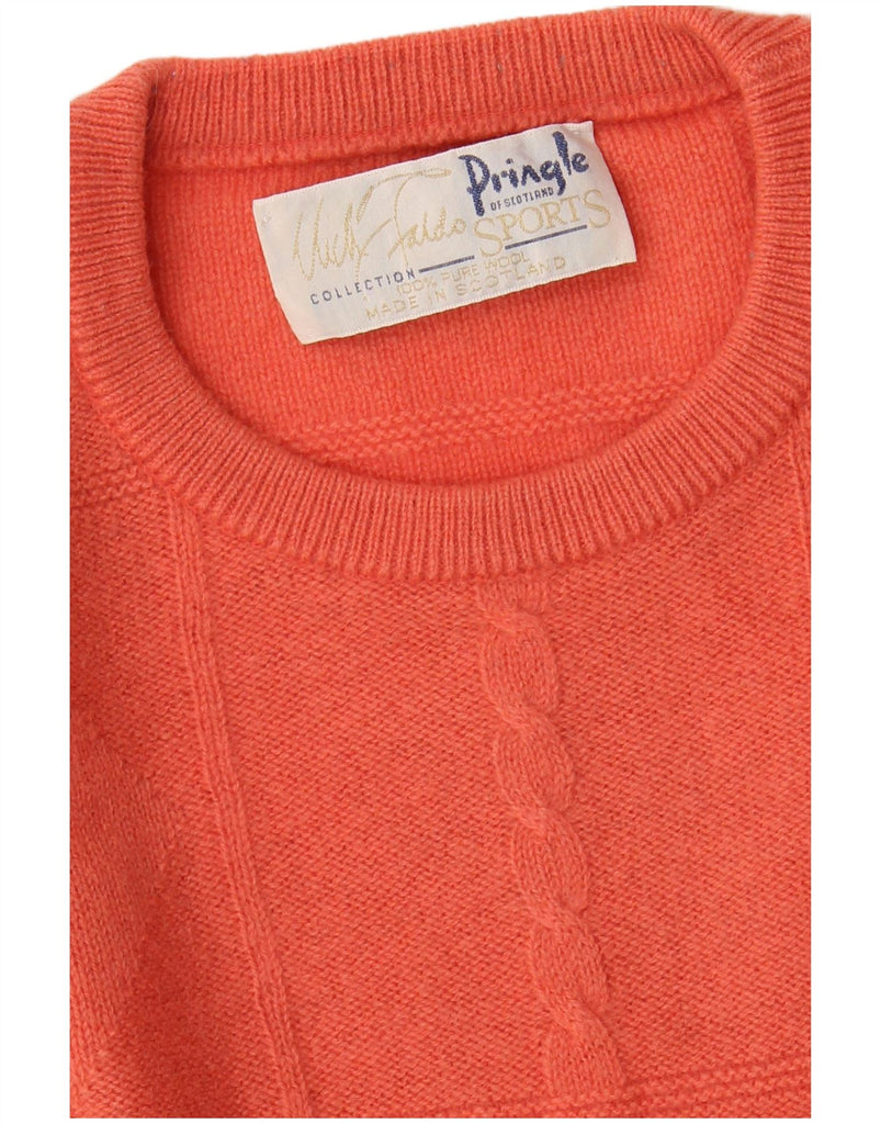 PRINGLE Mens Abstract Pattern Crew Neck Jumper Sweater Small Orange Wool