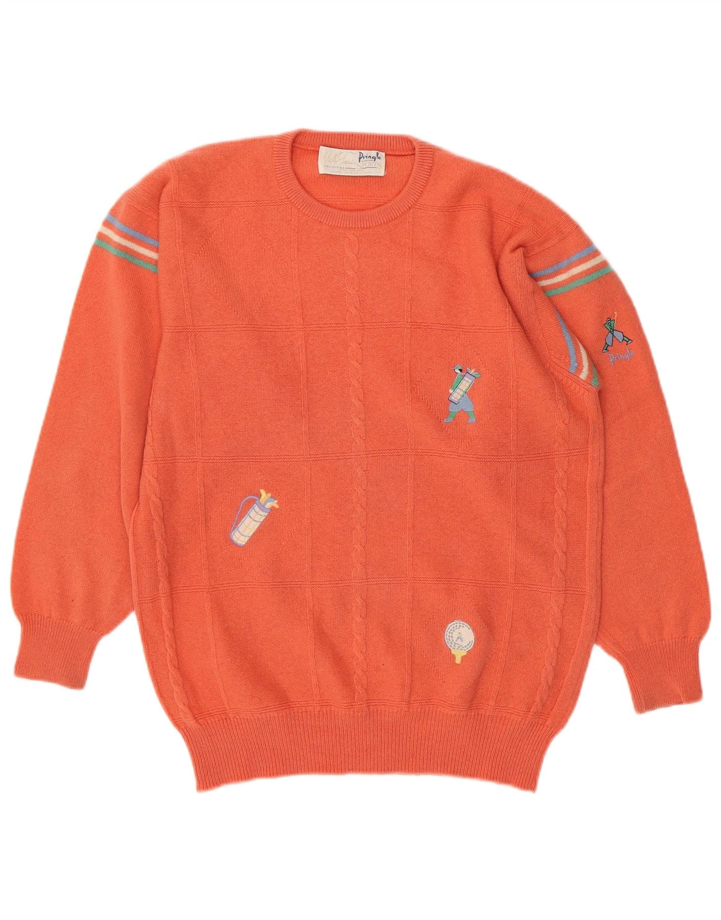 - AI Description: This Pringle mens Crew Neck Jumper Sweater is crafted from 100 pure wool, offering exceptional warmth and comfort. Its fine knit texture feels soft against the skin. The classic round neckline and long sleeves provide a timeless silhouette. A regular fit ensures ease of movement. This pullover design features an embroidered accent, adding a subtle touch of brand heritage. The vibrant orange hue makes a bold statement. Ideal for sports or casual wear, it combines traditional craftsmanship with modern style.