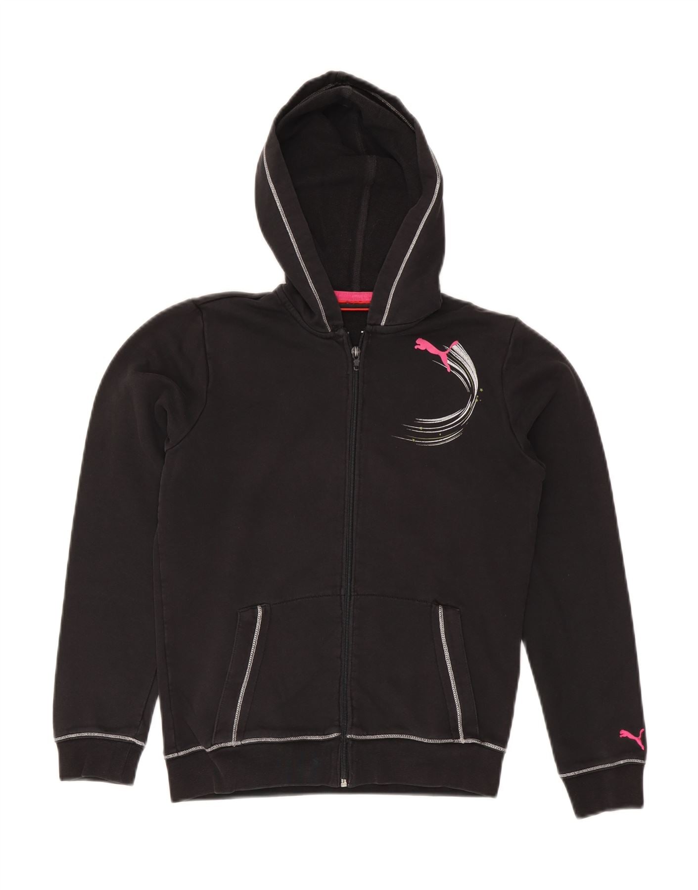 Pulover s kapuljačom s kapuljačom PUMA za djevojčice, 13-14 godina, crni pamuk