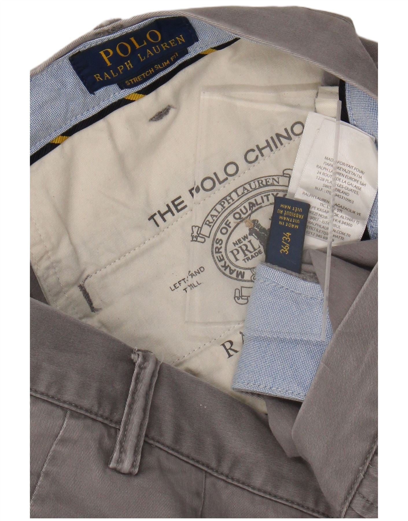 RALPH LAUREN Muške rastezljive uske chino hlače W36 L34 Sivi pamuk