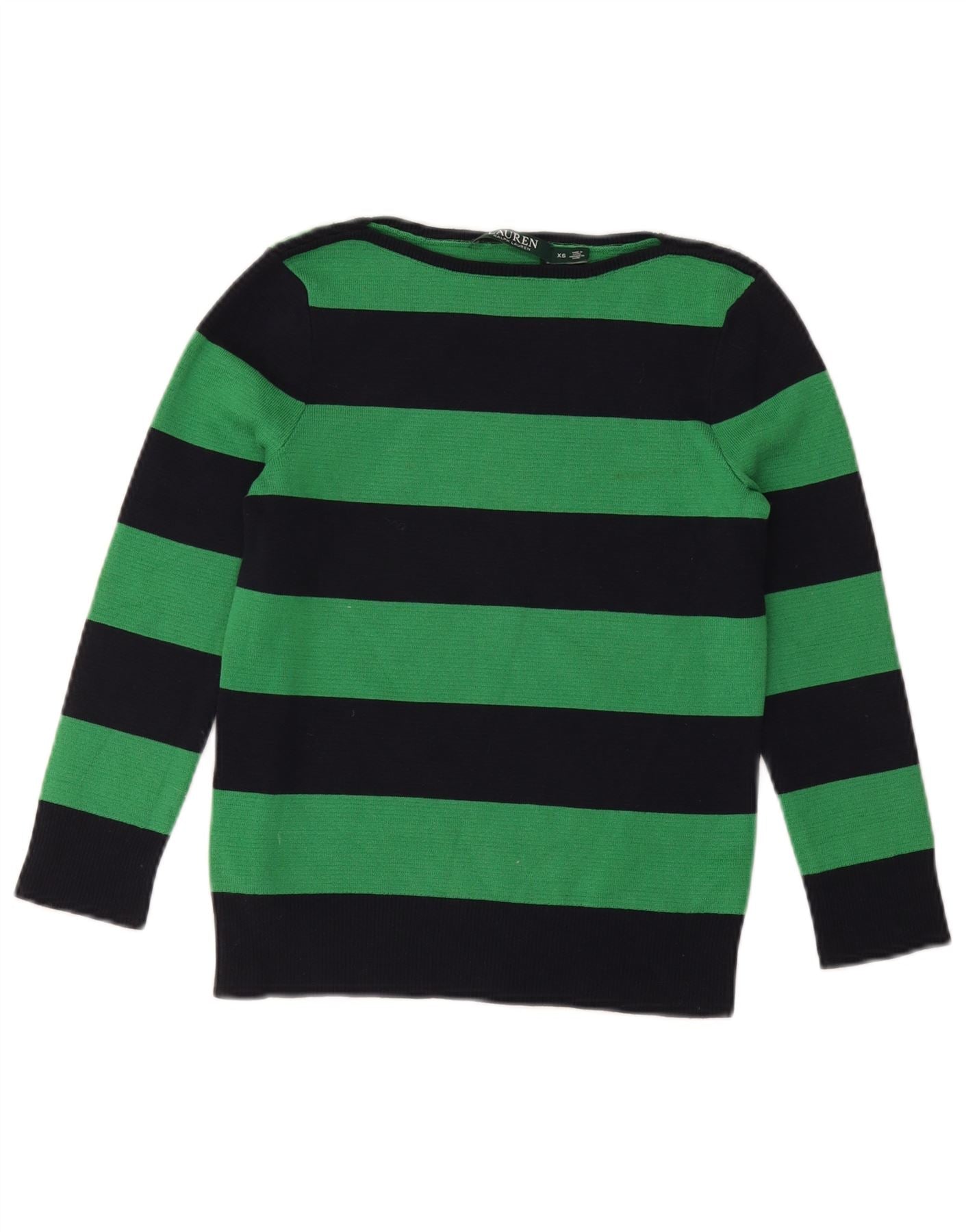 RALPH LAUREN Ženski džemper s veznim izrezom UK 6 XS Zeleni prugasti pamuk