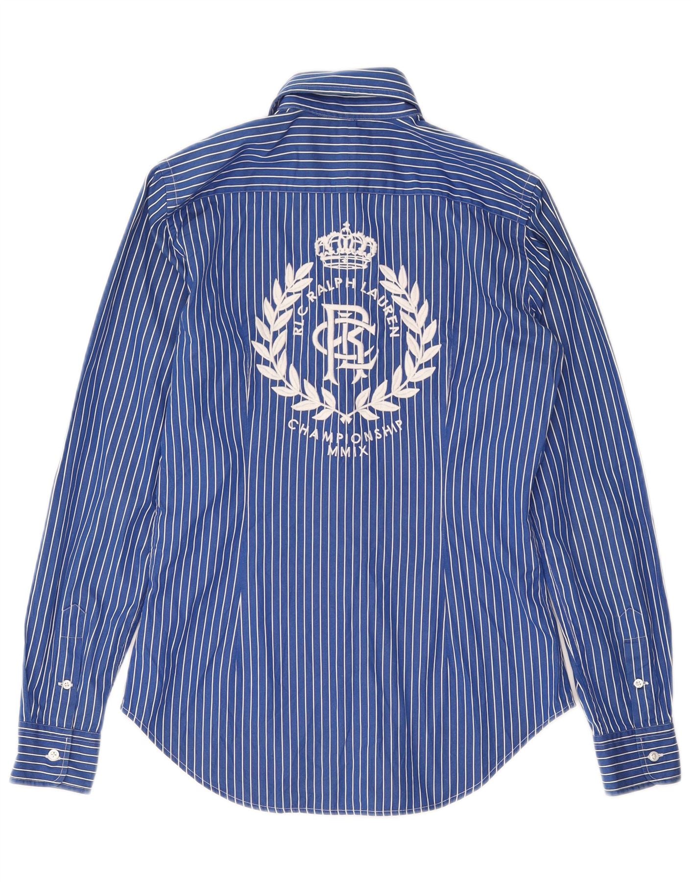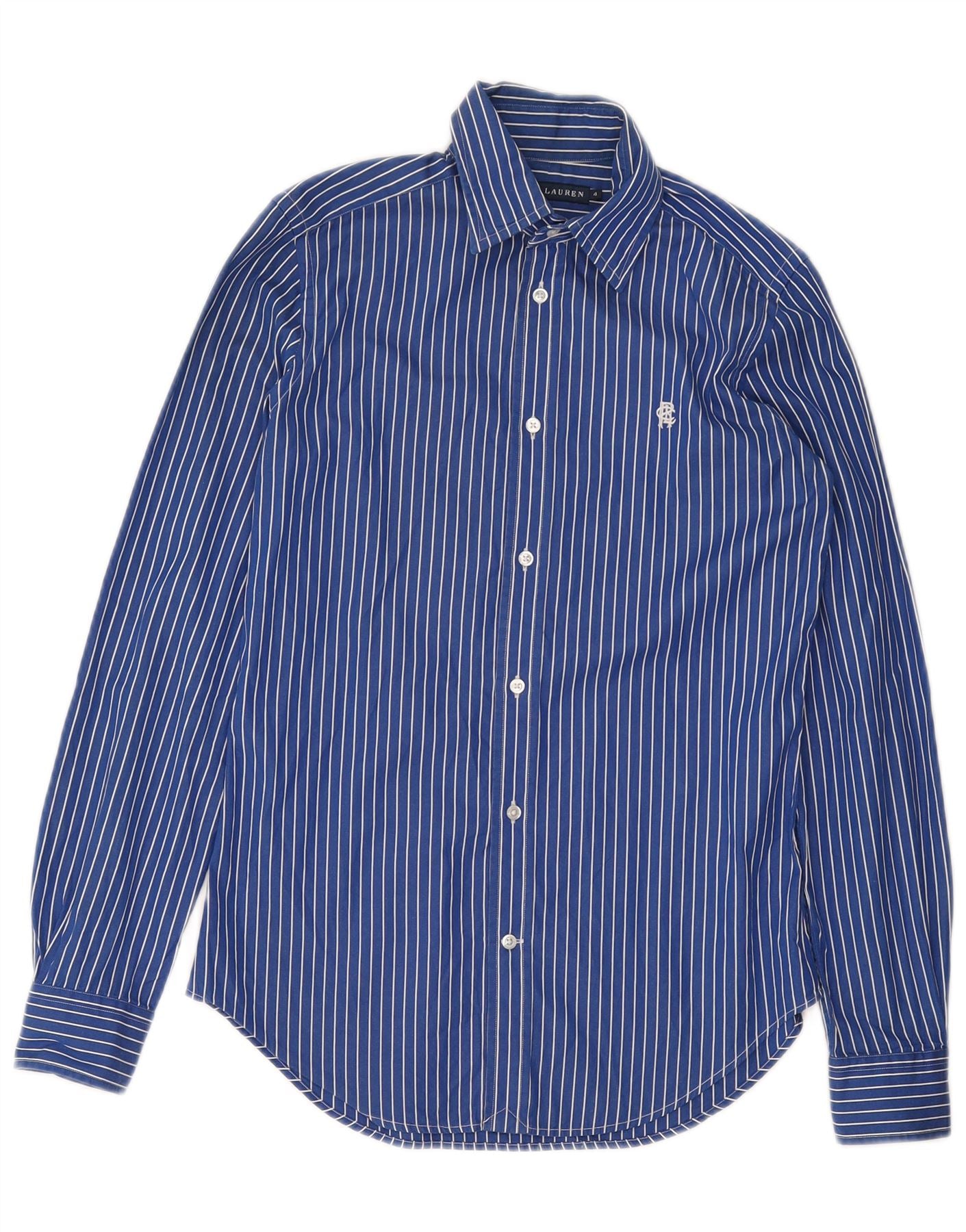 RALPH LAUREN Womens Graphic Shirt US 4 Small Blue Striped Cotton