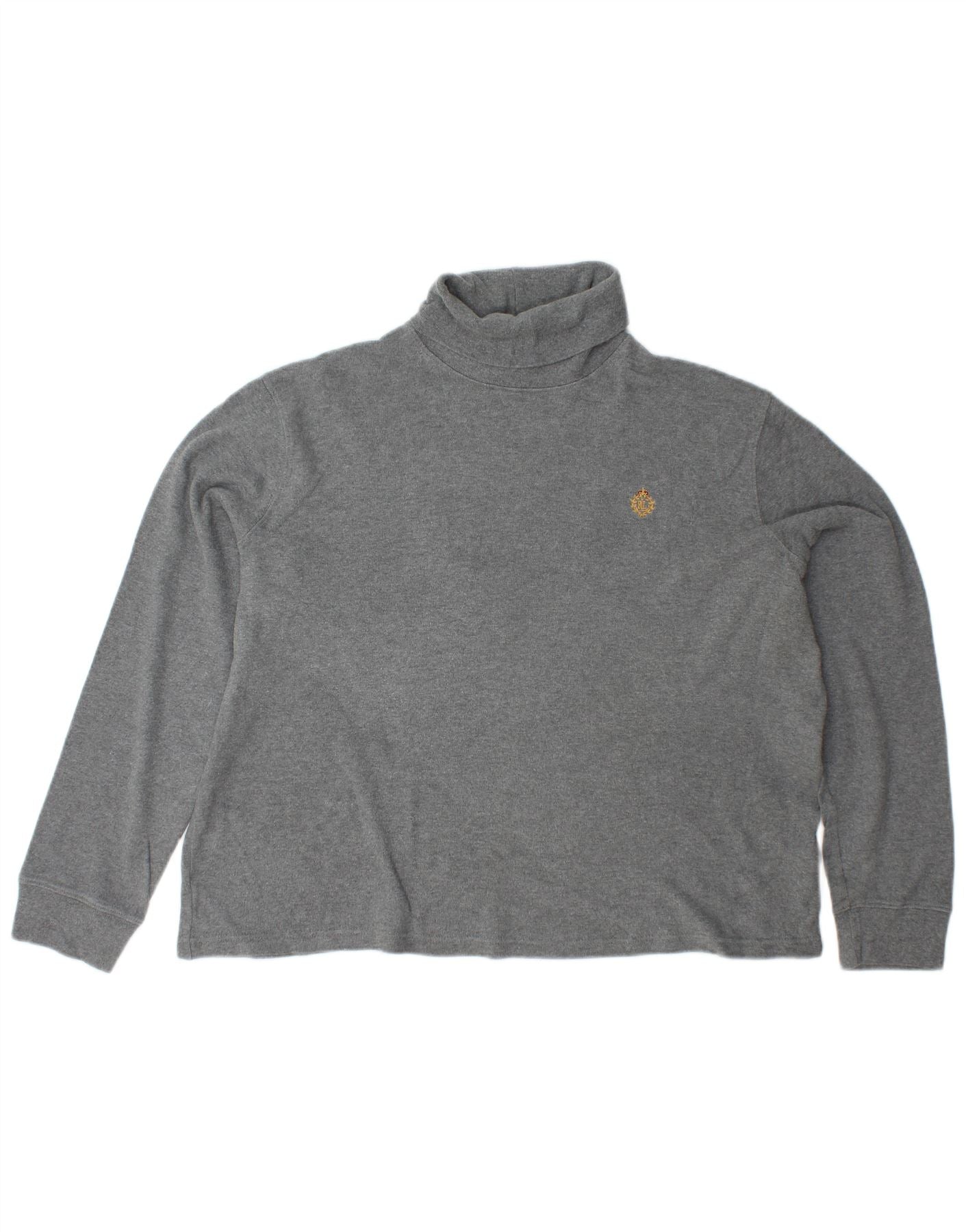 RALPH LAUREN Ženski pulover s rol izrezom UK 18 XL Sivi pamuk