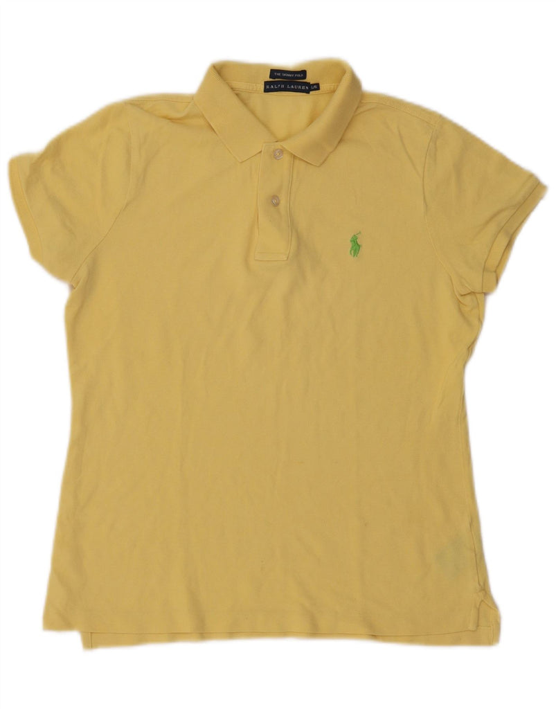 RALPH LAUREN Womens Skinny Polo Shirt UK 14 Large Yellow Cotton