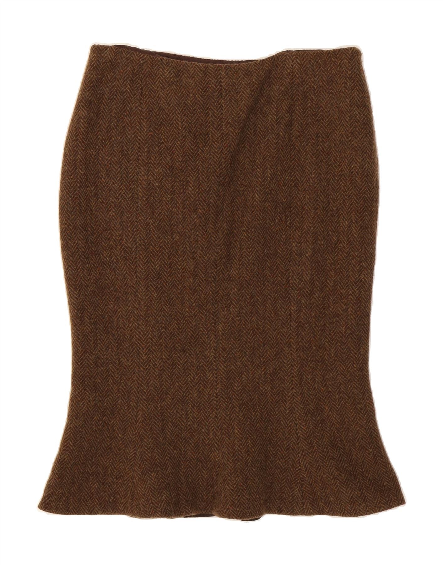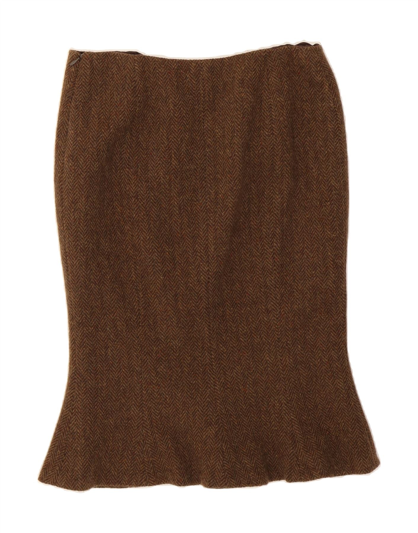 RALPH LAUREN Womens Trumpet Skirt US 10 Large W30 Brown Herringbone