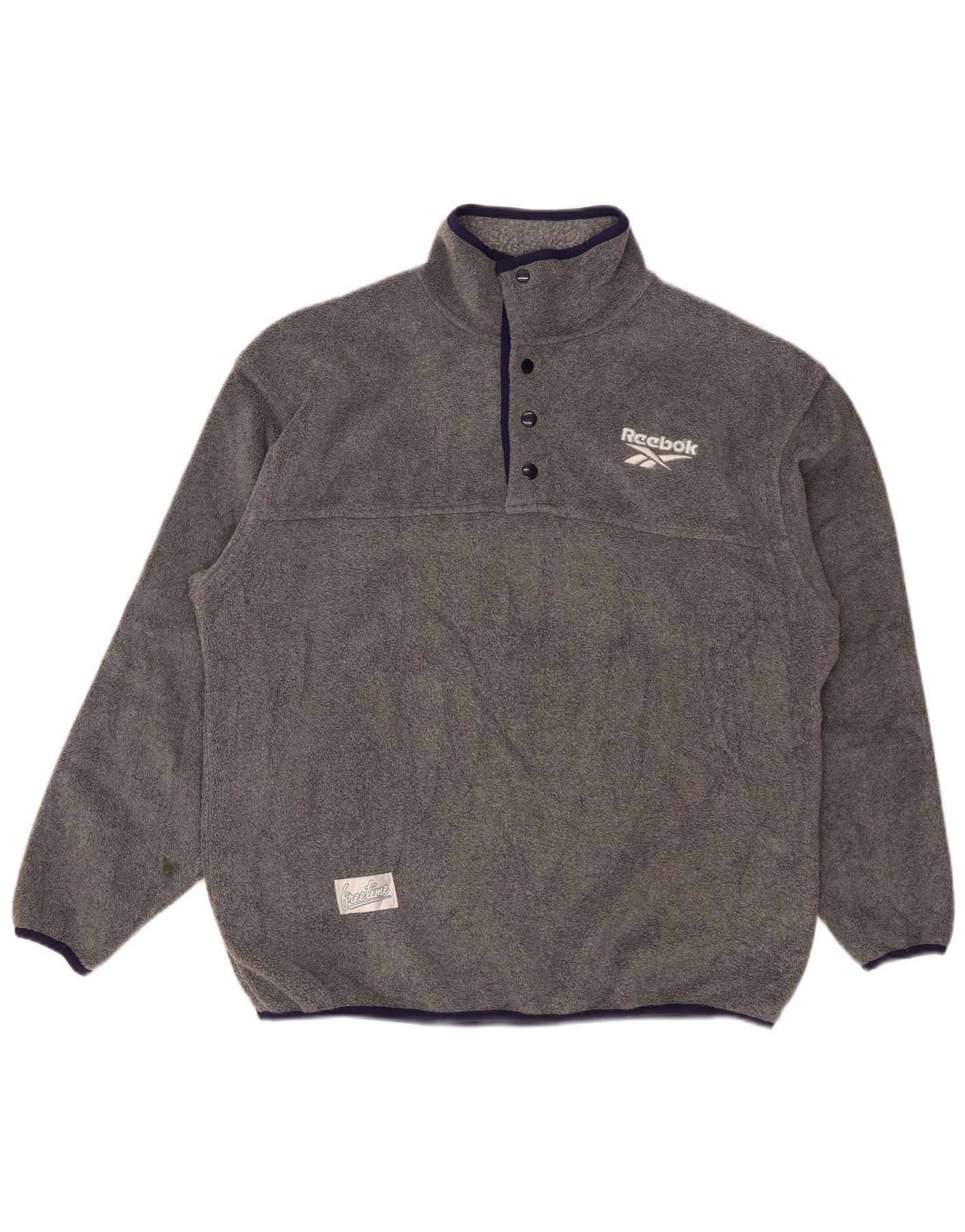 REEBOK muški džemper od flisa s dugmadima i ovratnikom, srednje sivi poliester