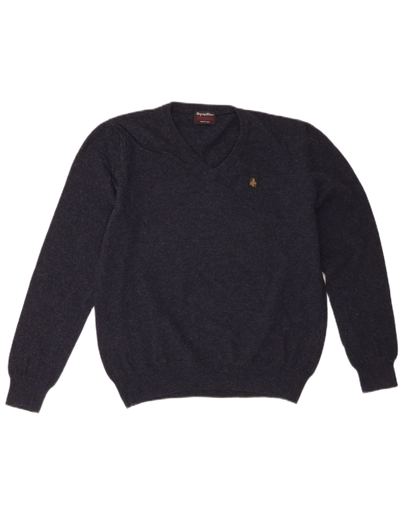 REFRIGIWEAR Womens V-Neck Jumper Sweater UK 18 XL Navy Blue Wool