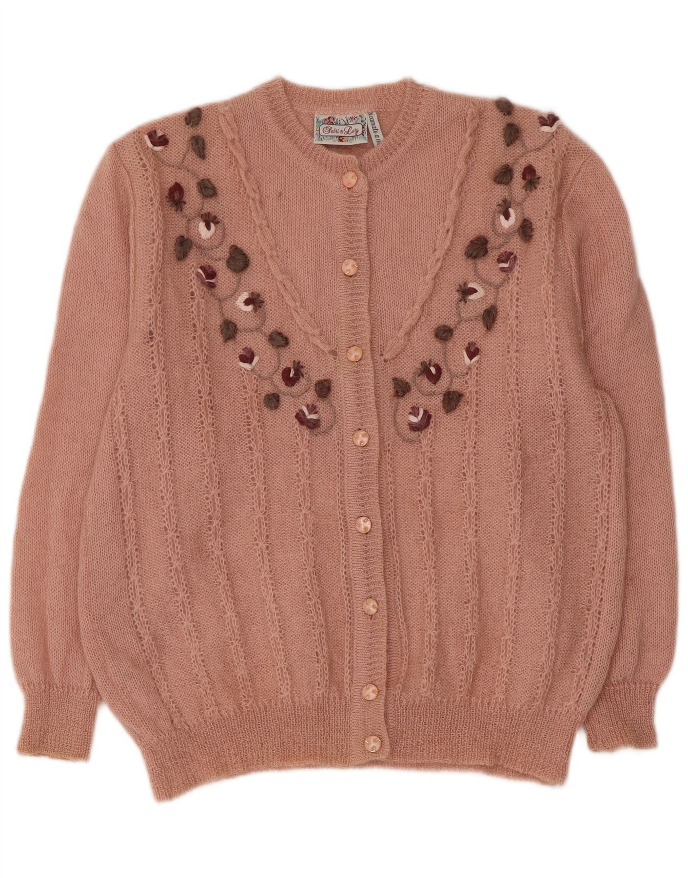 RICAMO A MANO ženski kardigan džemper IT 50 XL ružičasti cvjetni moher
