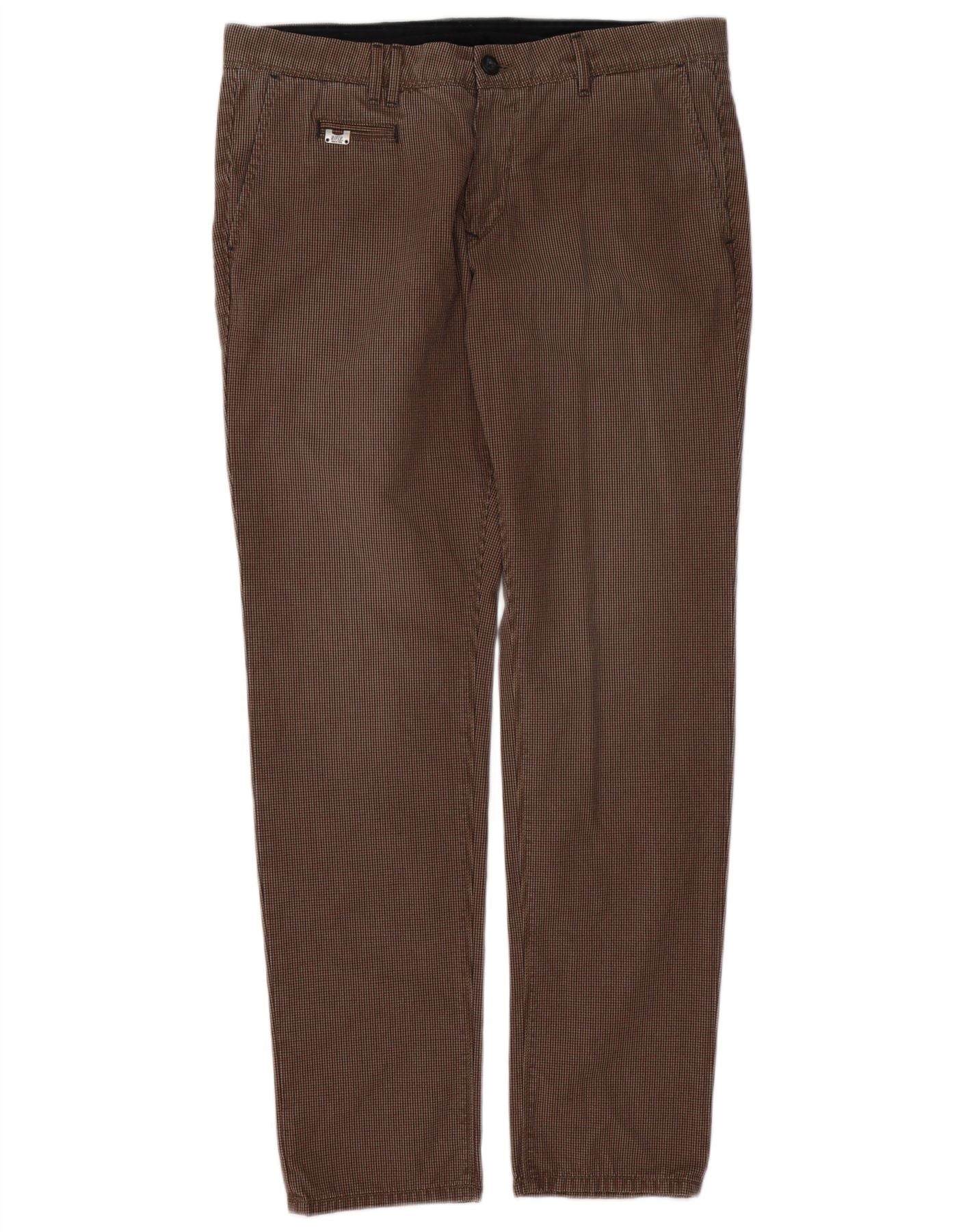 RIFLE Muške uske chino hlače W33 L32 Smeđi pamuk u obliku ptičje zube