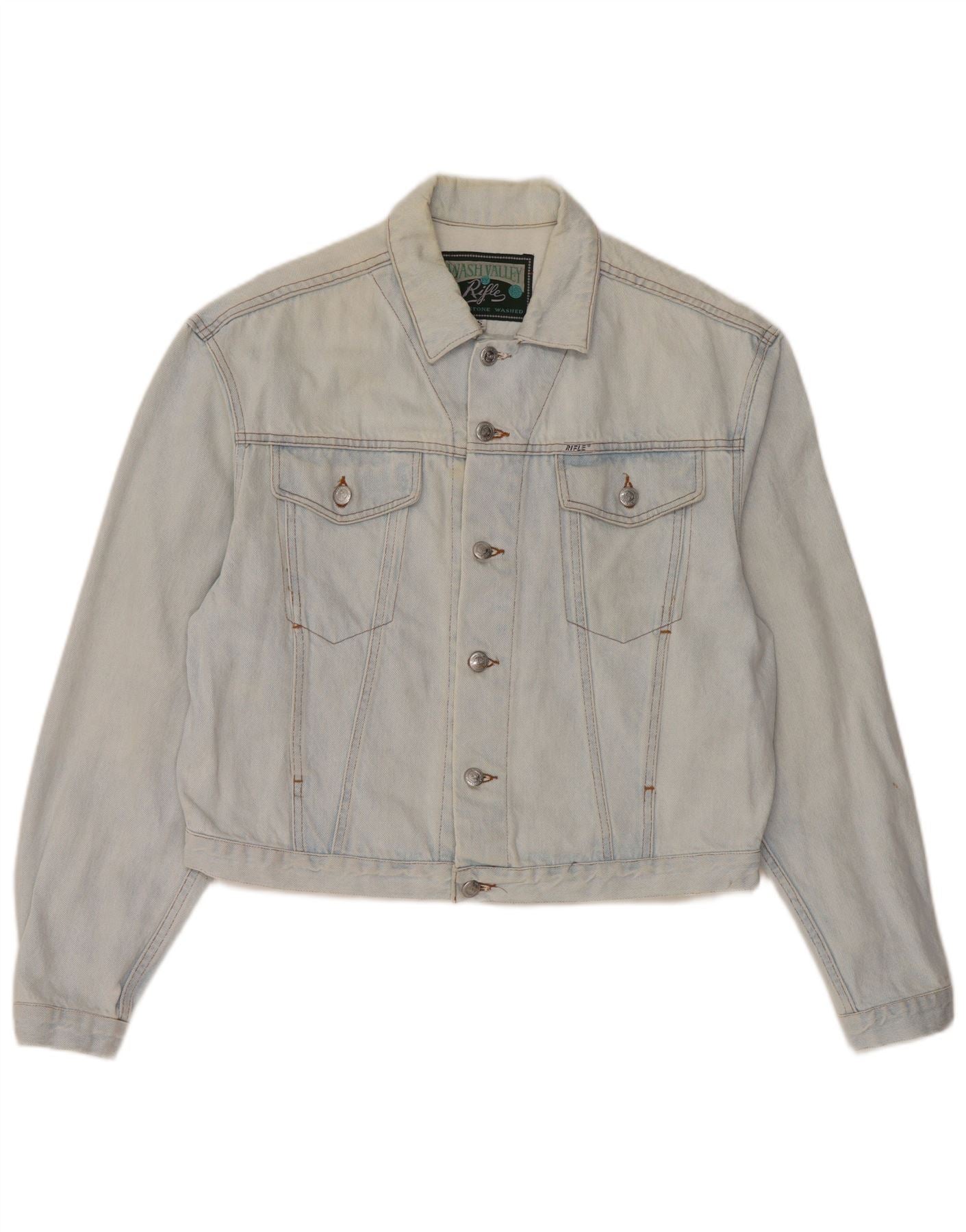 RIFLE Ženska crop prevelika traper jakna UK 10 Small Blue Cotton