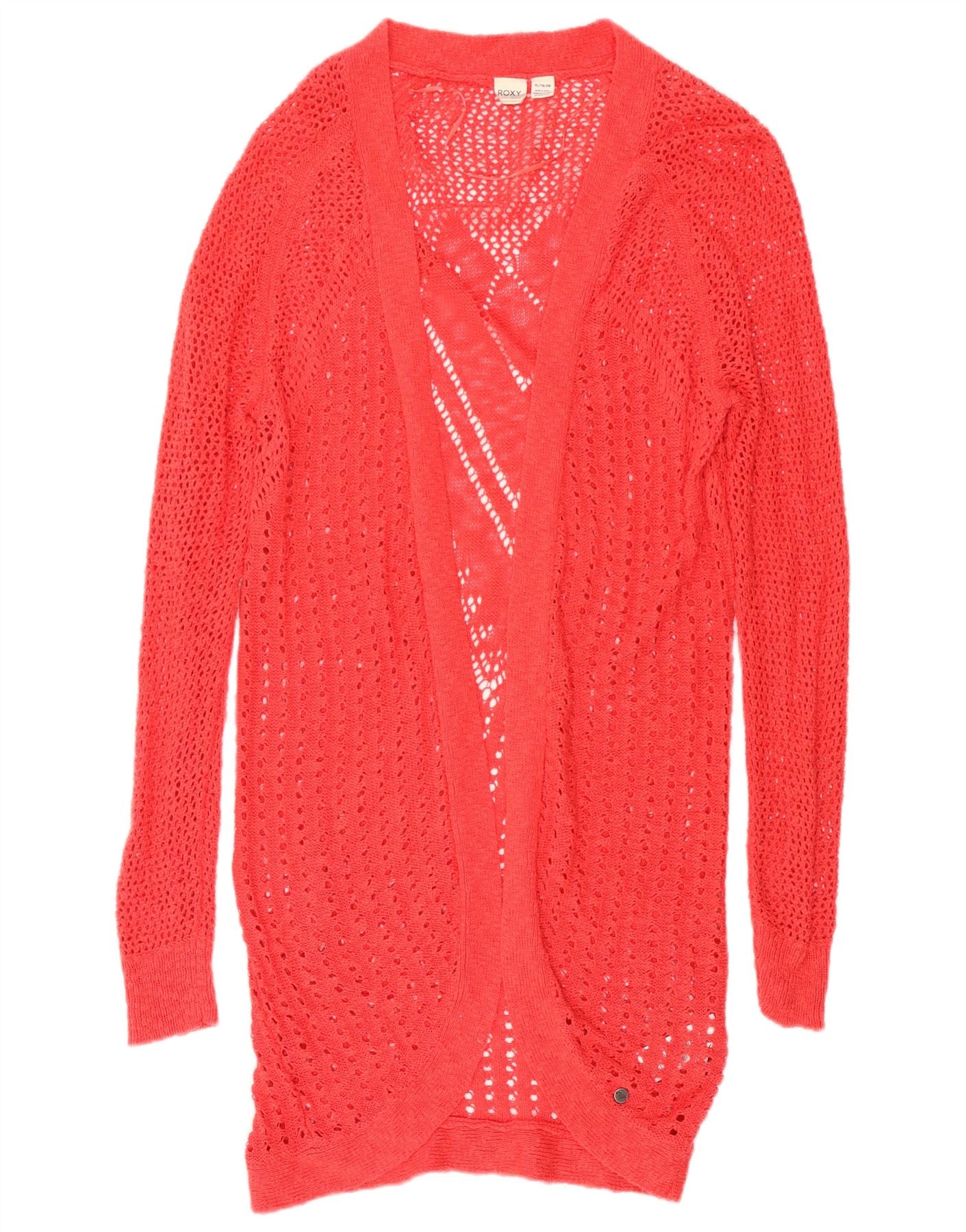 ROXY ženski dugački heklani kardigan pulover UK 18 XL crveni pamuk