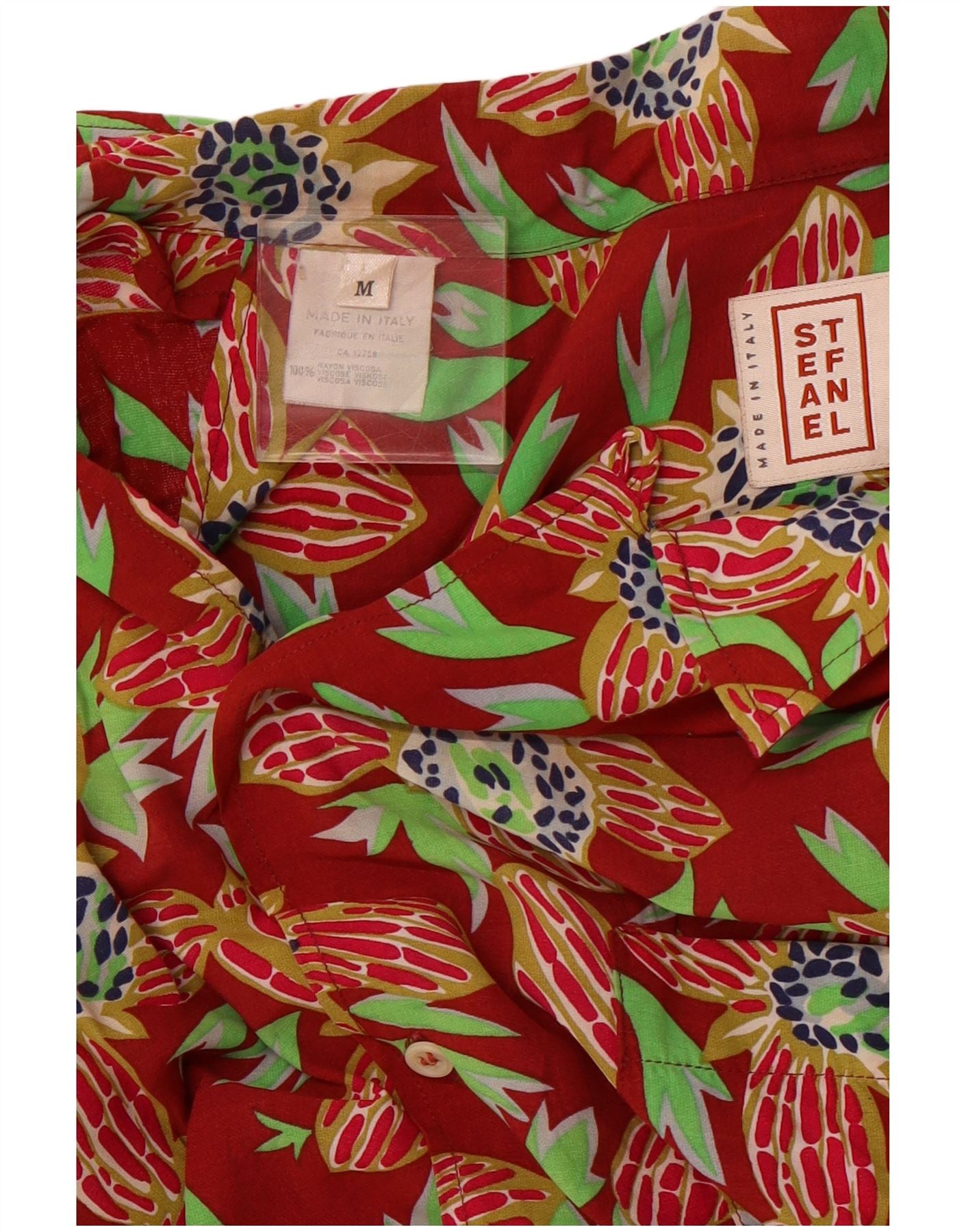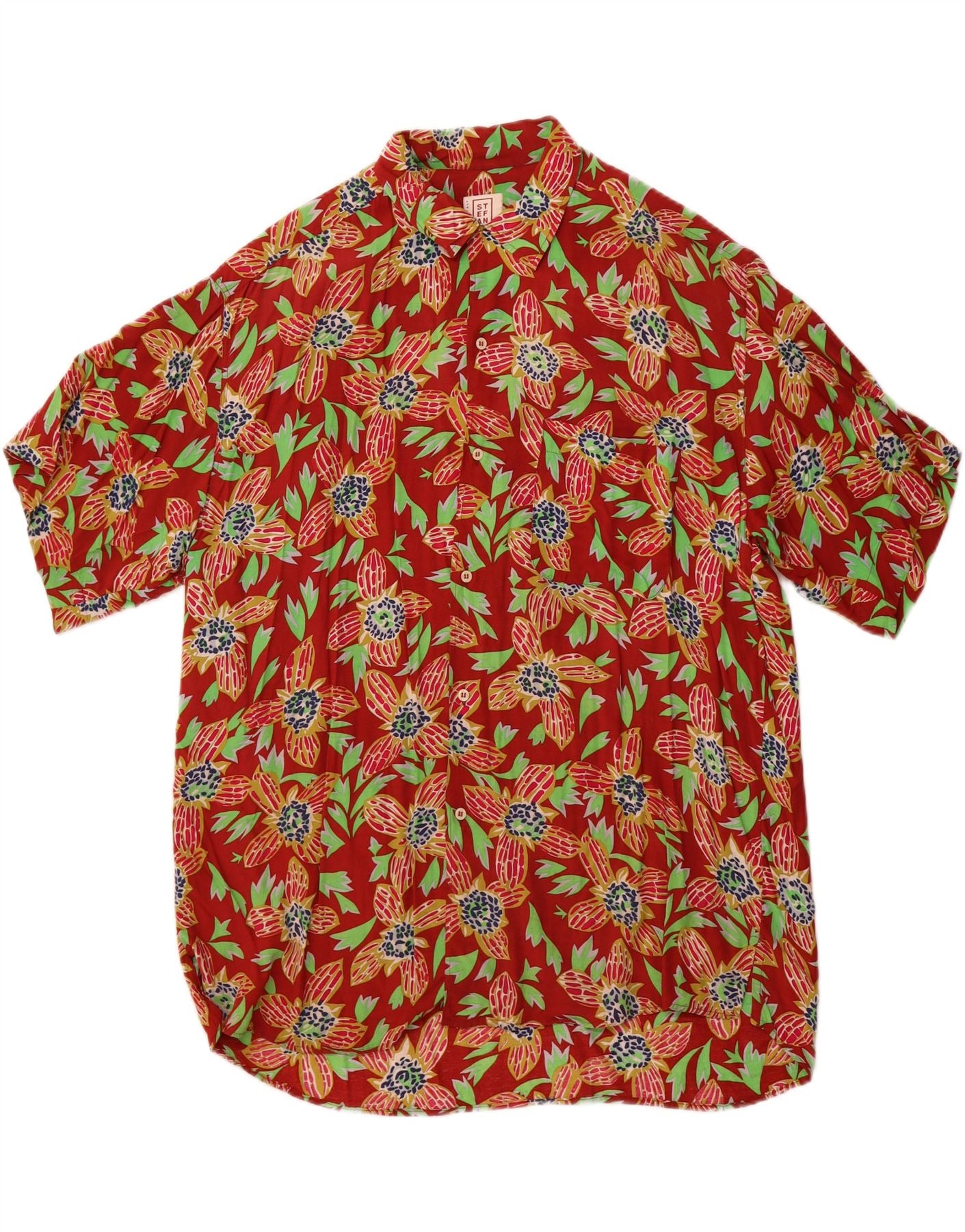 STEFANEL muška košulja kratkih rukava srednje crvene cvjetne havajske svile