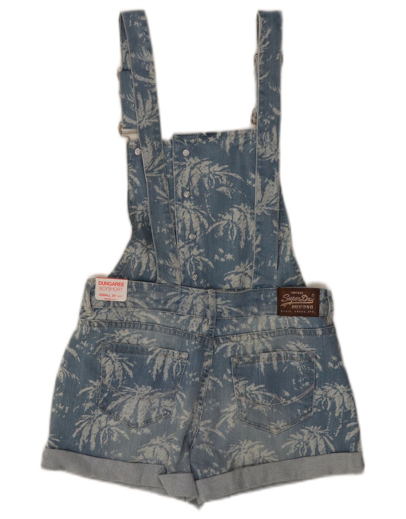 SUPERDRY Dungarees traper kratke hlače za djevojčice 11-12 godina XS plavi cvjetni pamuk