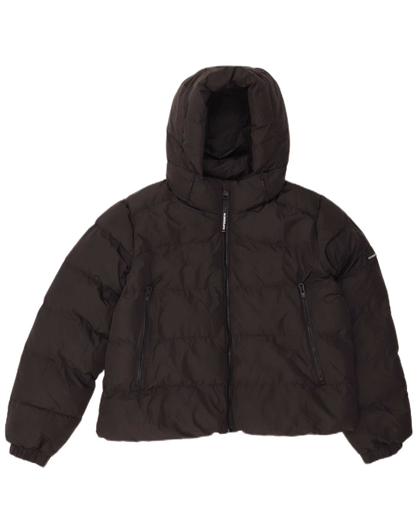 Superdry ženska podstavljena jakna s kapuljačom UK 16 veliki crni poliester