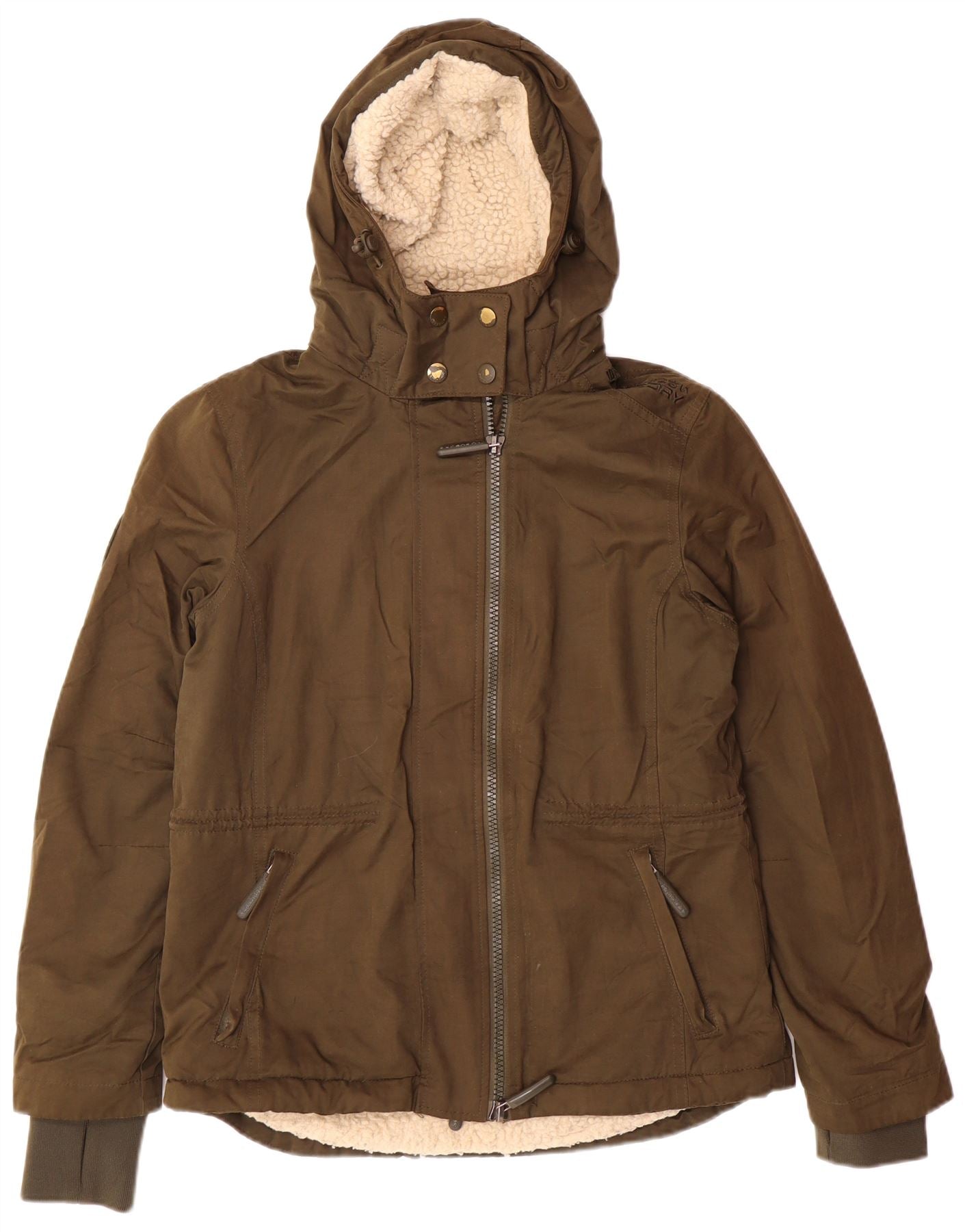 SUPERDRY ženska vjetrovka s kapuljačom s grafičkim motivima UK 12 srednje kaki boje