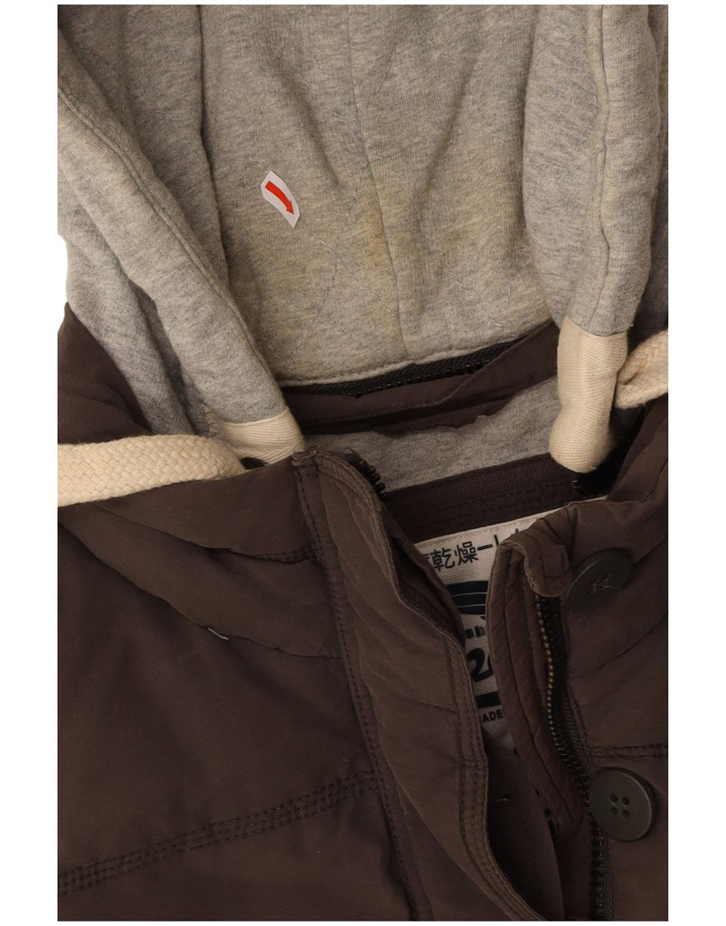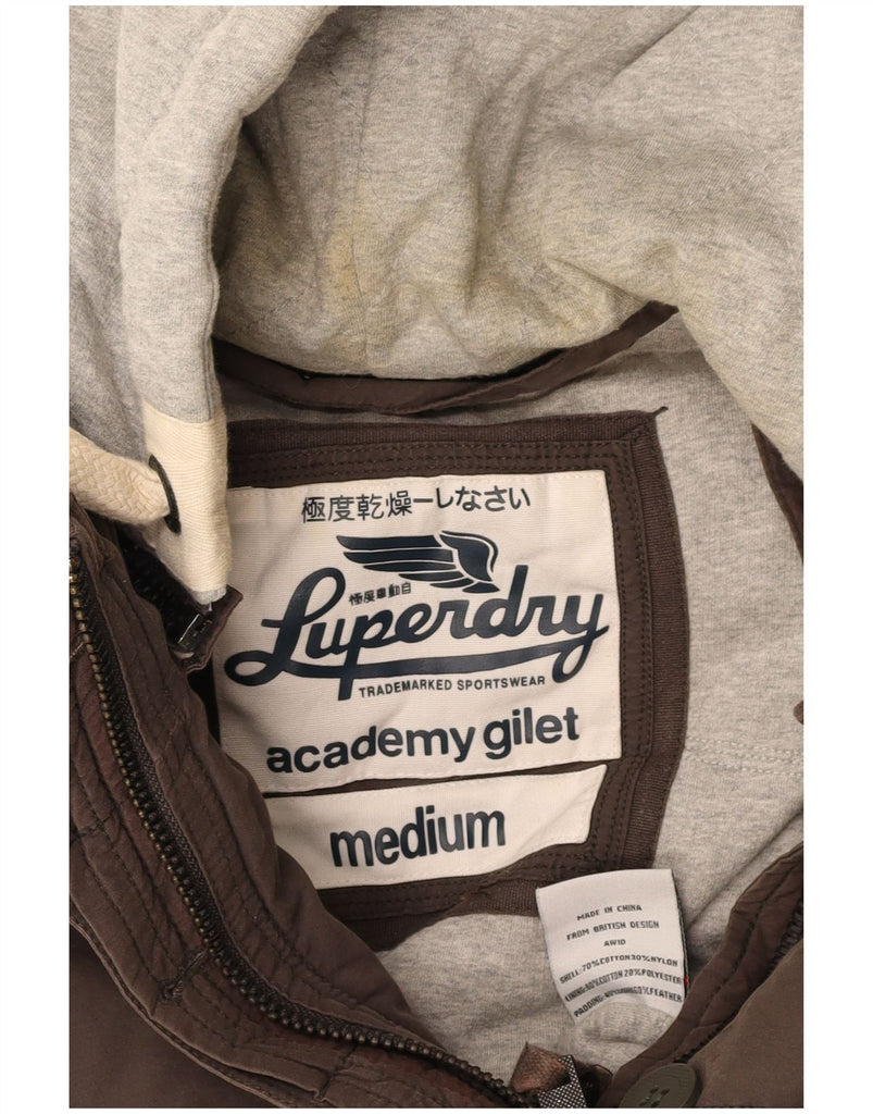 SUPERDRY Womens Hooded Padded Gilet UK 12 Medium Brown Colourblock Cotton