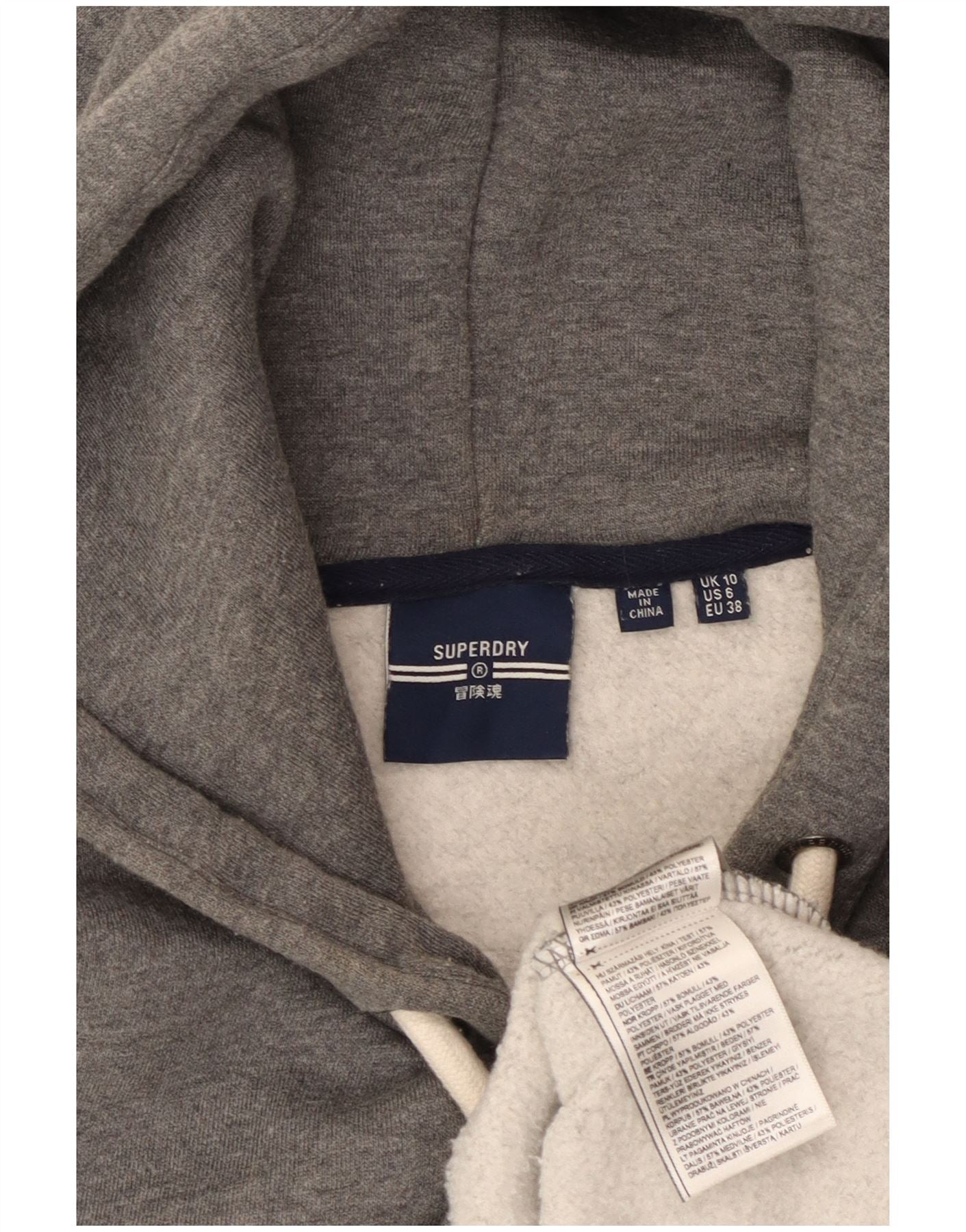 SUPERDRY Womens Oversized Graphic Hoodie Jumper UK 10 Small Grey Cotton