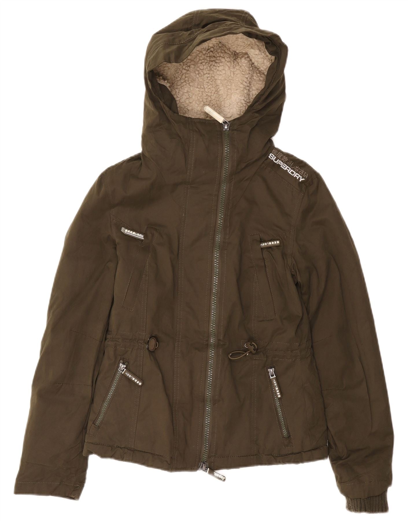 Superdry ženska jakna s kapuljačom Windparka UK 6 XS zeleni poliester
