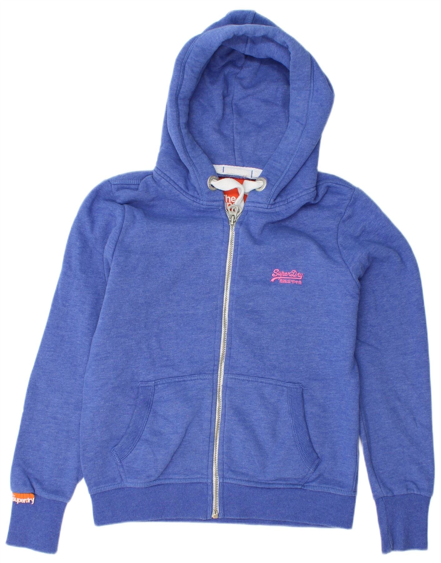SUPERDRY ženski pulover s kapuljačom s patentnim zatvaračem UK 16 Veliki plavi pamuk
