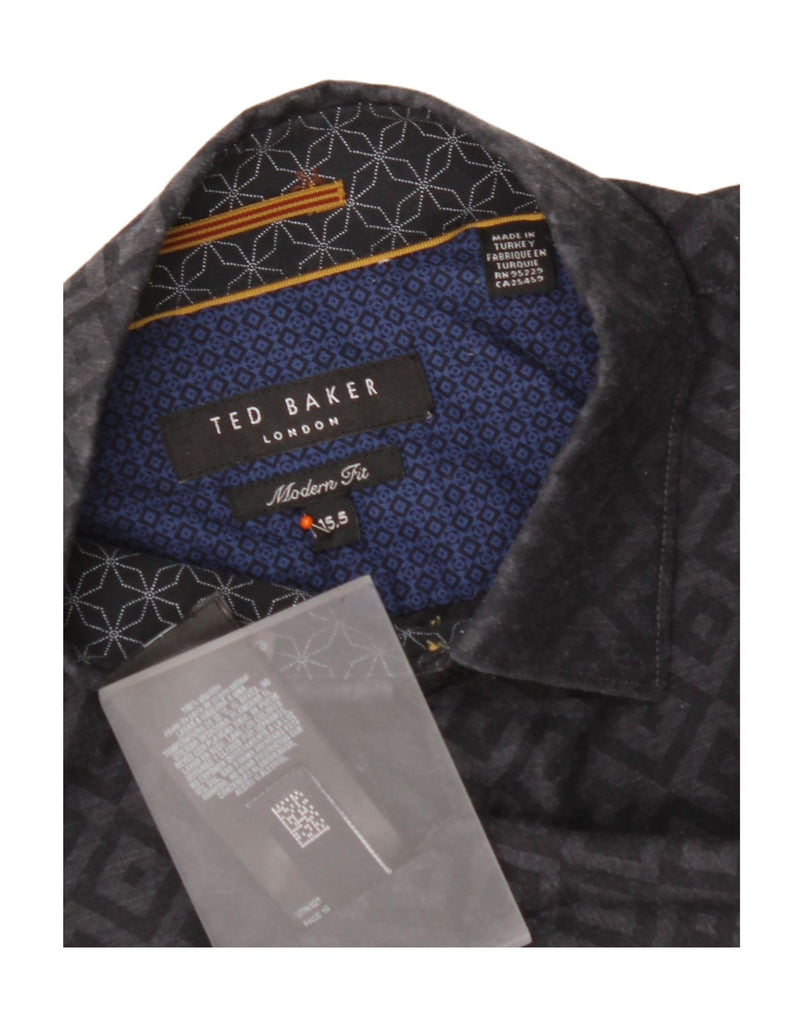 TED BAKER Mens Modern Fit Shirt Size 15 1/2 Medium Black Geometric Cotton