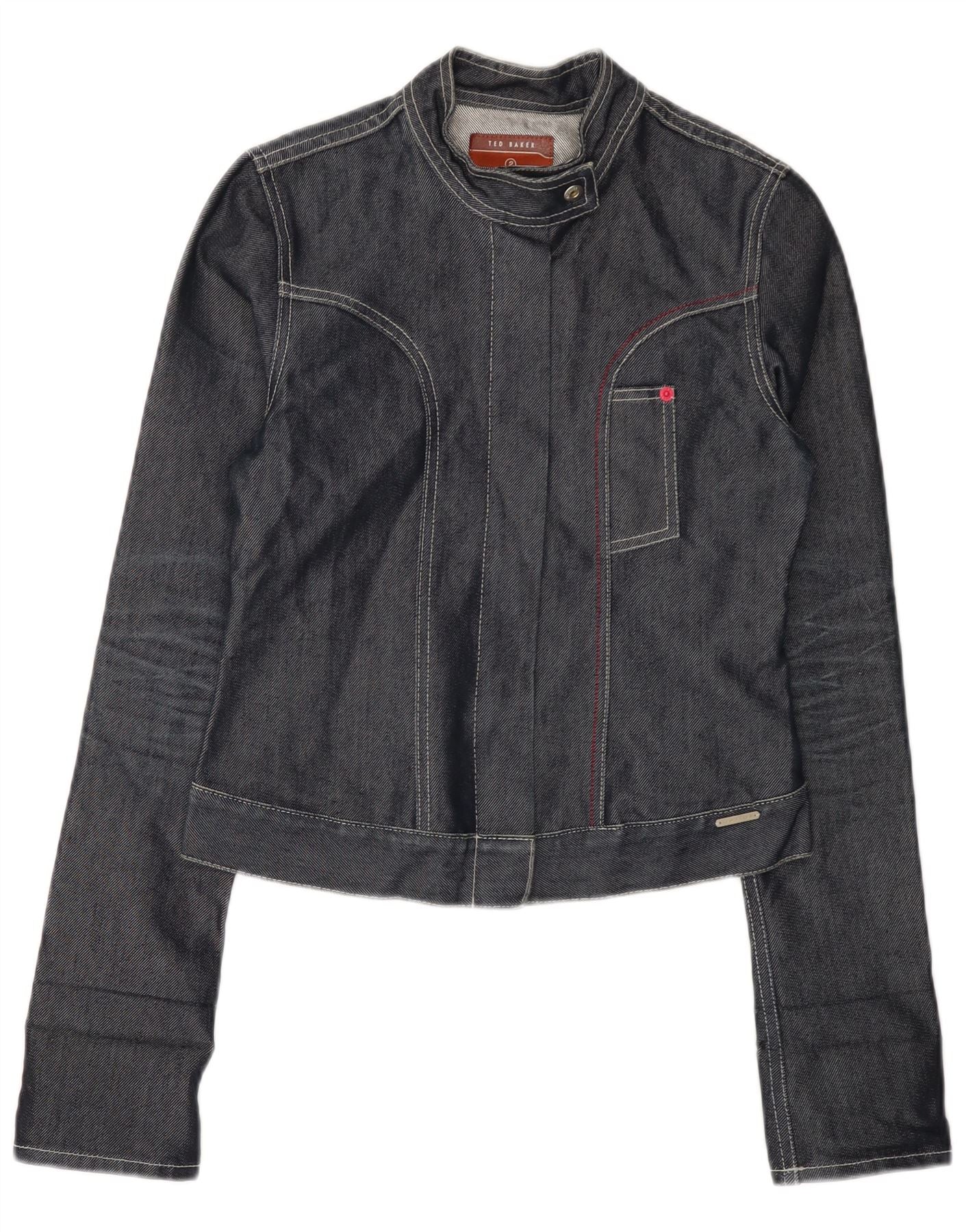 TED BAKER Ženska jakna od kratkog trapera veličine 2 Mala siva pamučna