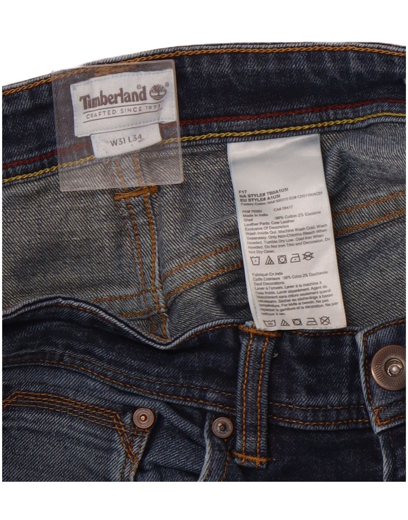 TIMBERLAND Muške ravne traperice W31 L30 Plavi pamuk