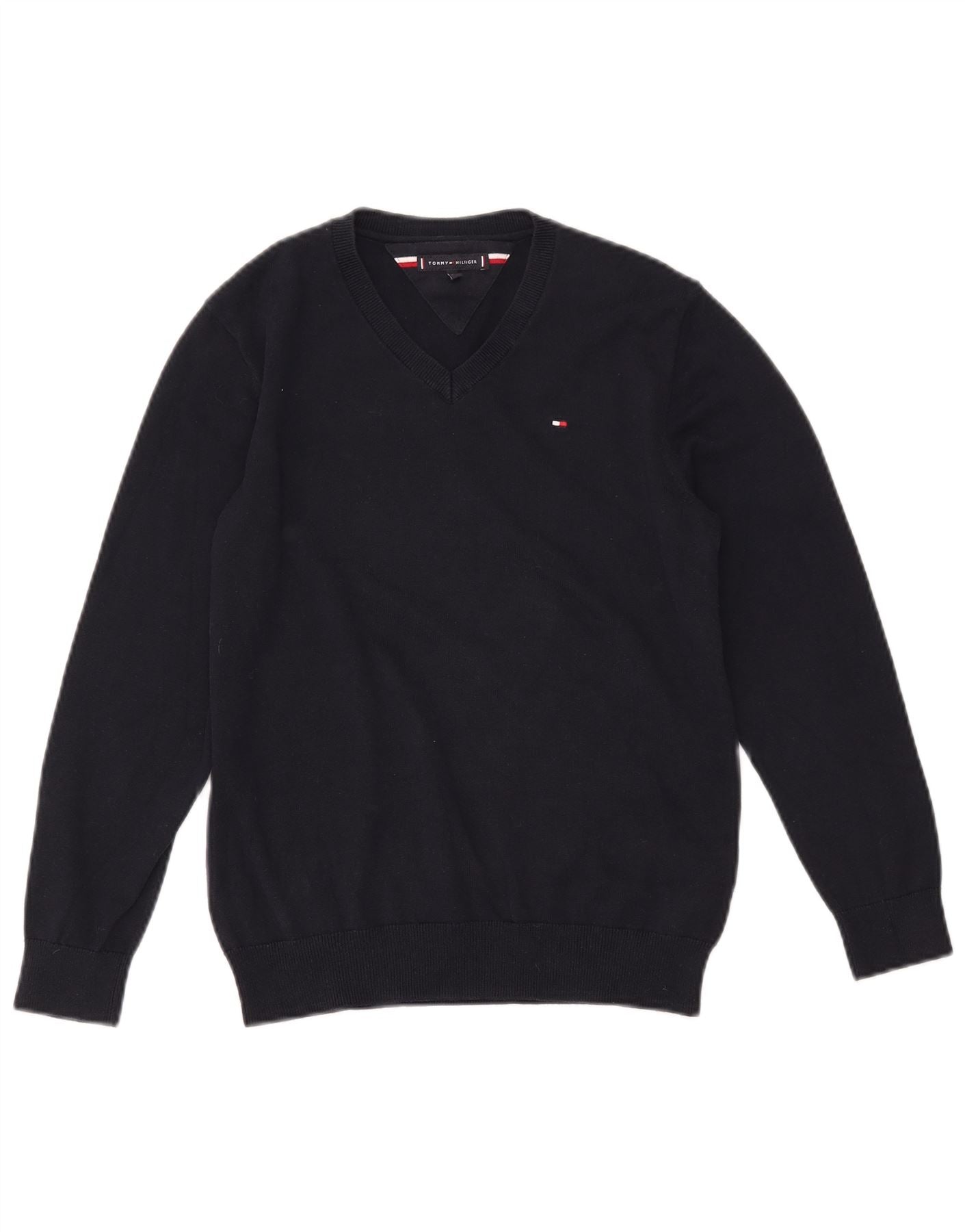 TOMMY HILFIGER Džemper s V-izrezom za dječake 11-12 godina, tamnoplavi pamuk