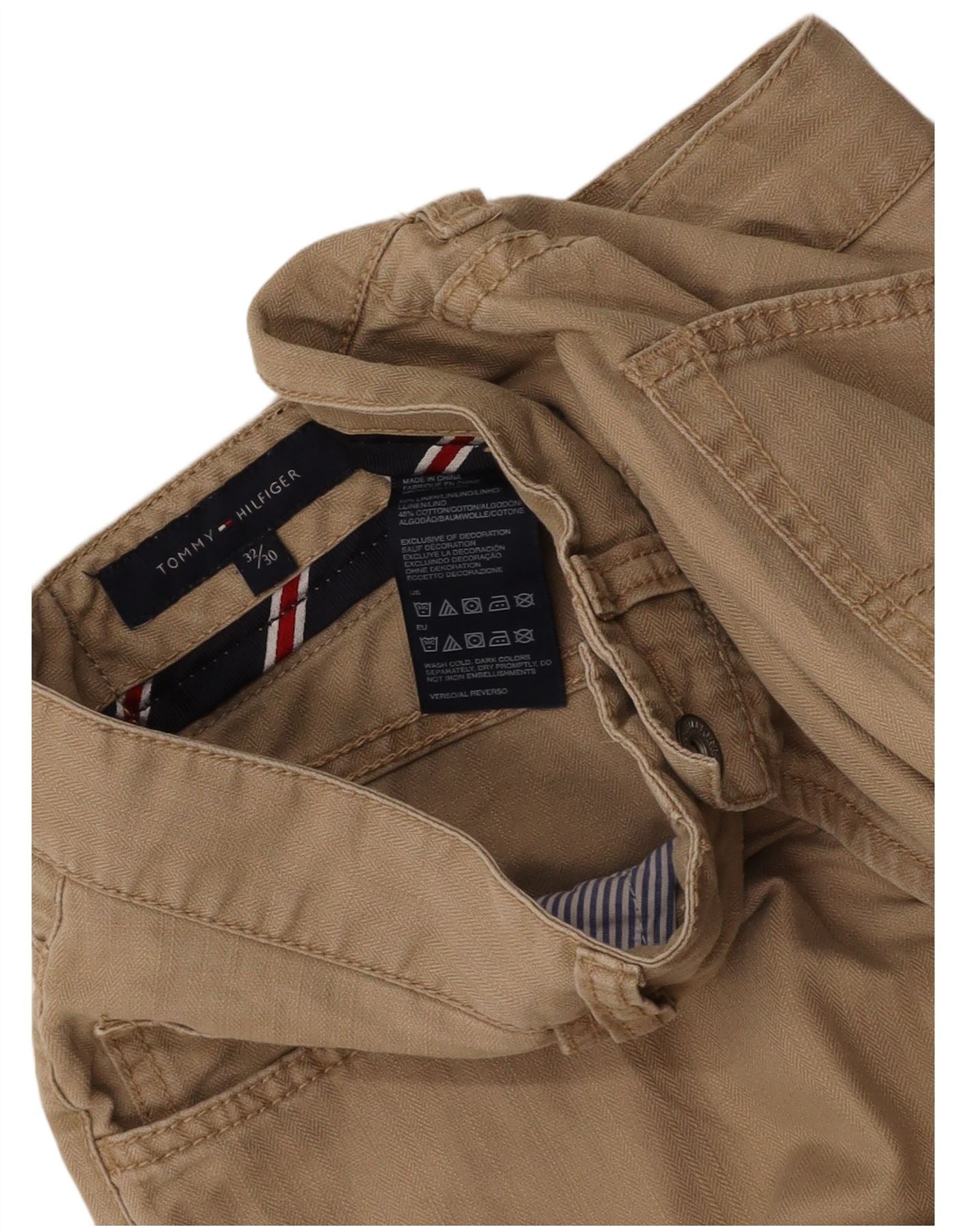 TOMMY HILFIGER Muške ravne ležerne hlače W32 L30 Bež riblja kost