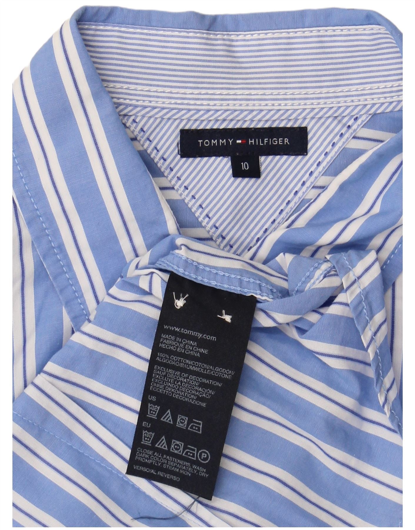 TOMMY HILFIGER Ženska majica s prednjicom s volanima US 10, velike pamučne plave pruge