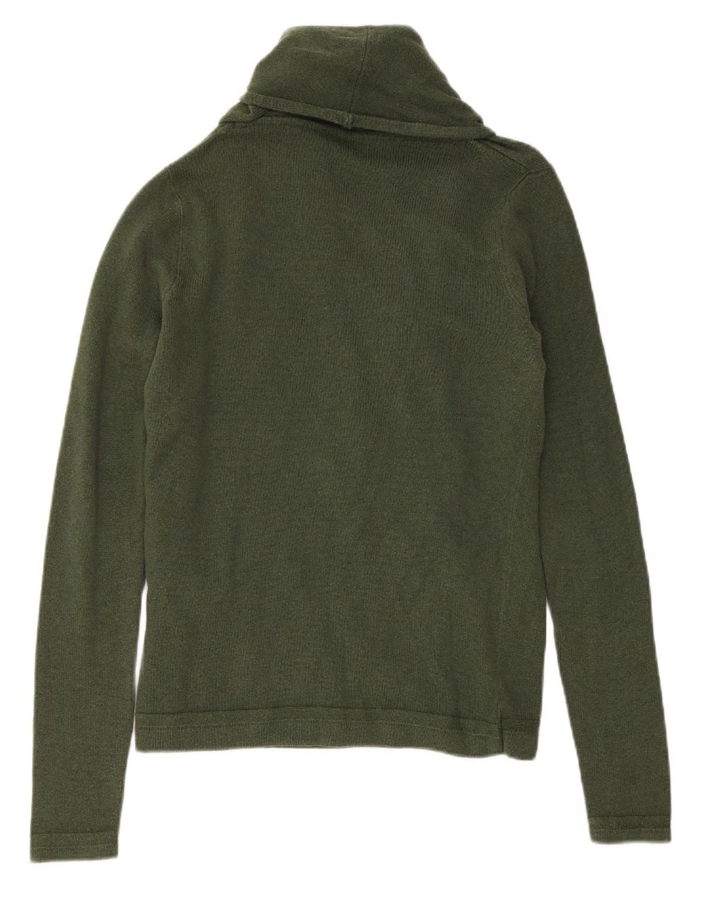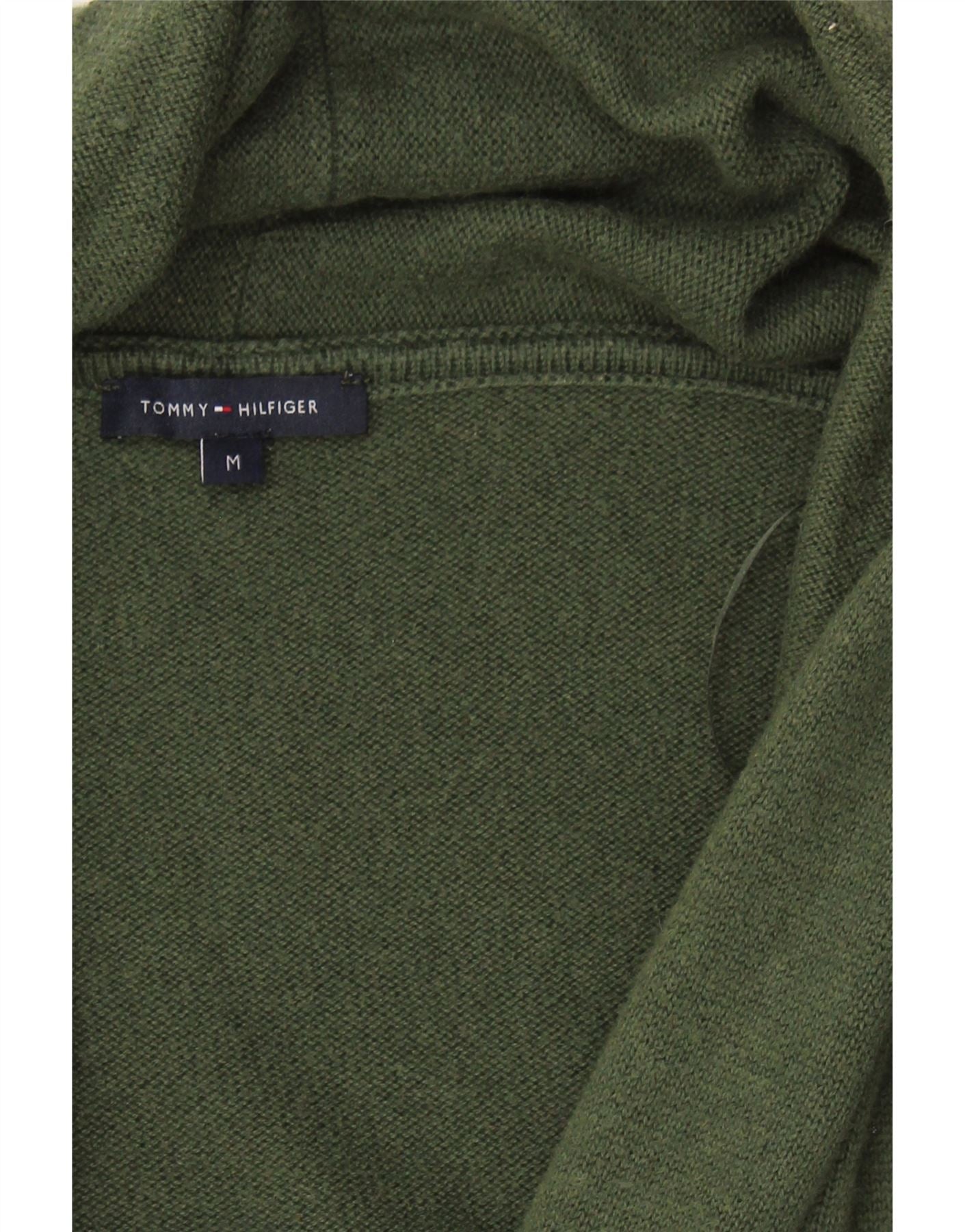 TOMMY HILFIGER Womens Shawl Neck Jumper Sweater UK 14 Medium Green Wool