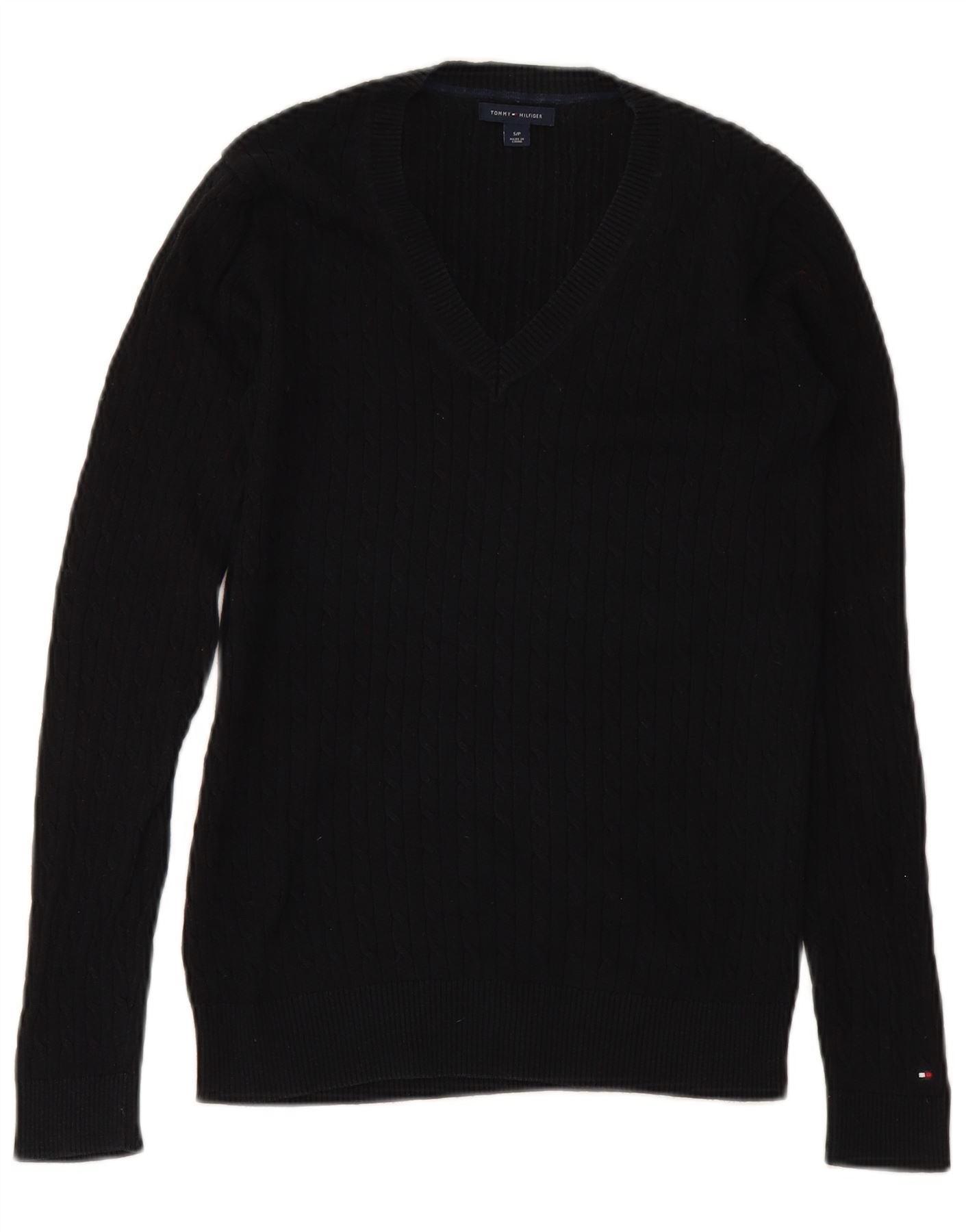 TOMMY HILFIGER Ženski džemper s V-izrezom UK 10 Mali crni