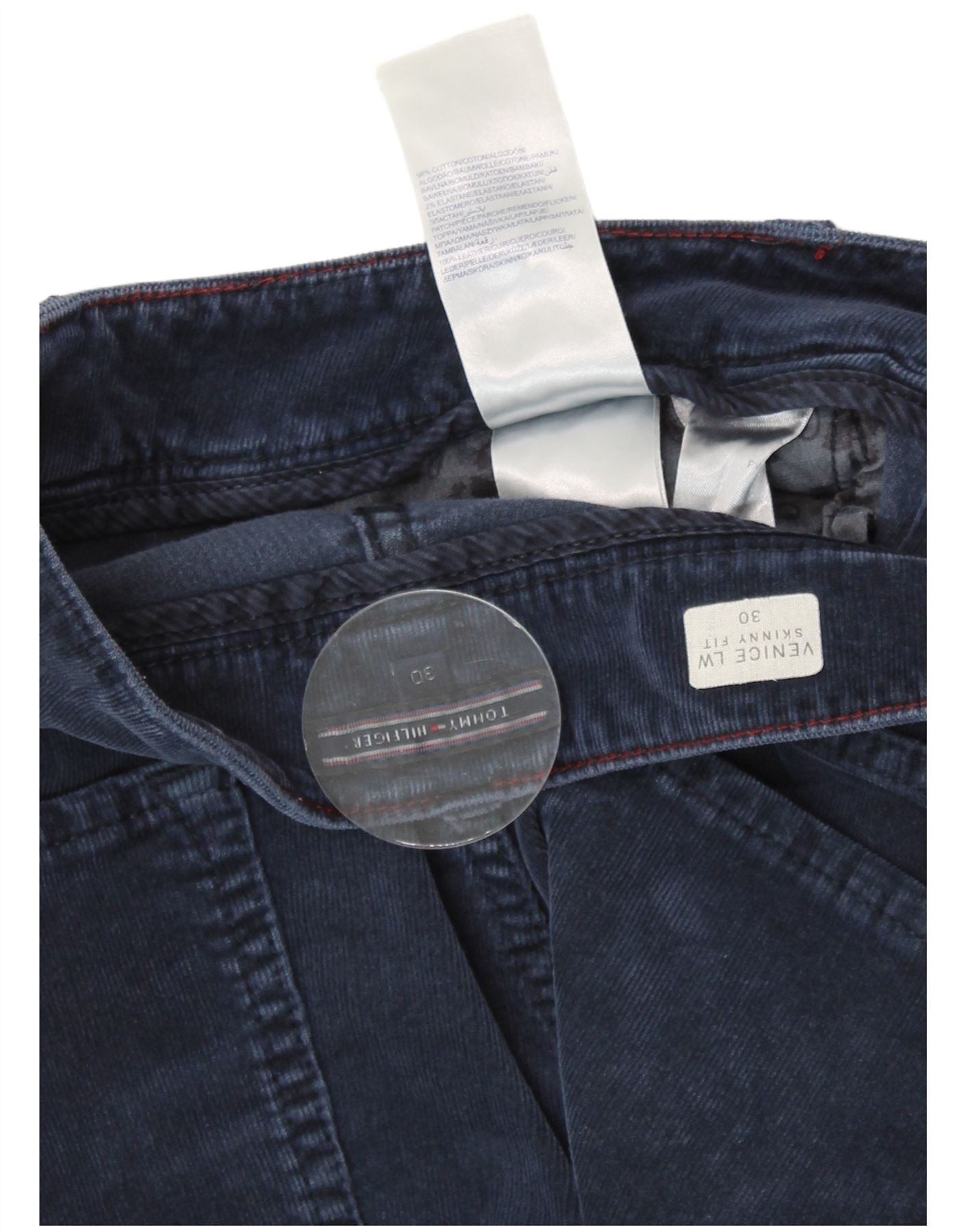 TOMMY HILFIGER Ženske Venice LW uske hlače od samta W30 L31 tamnoplave